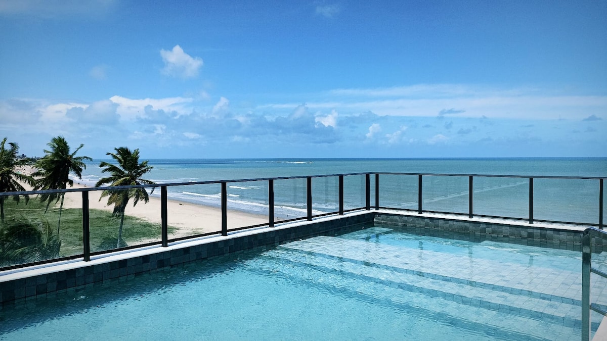 Loft com hidromassagem frente mar e pé na areia