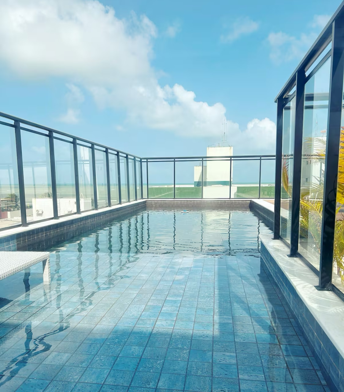 Apartamento novo em prédio pé na areia, de frente para o mar do Bessa, com terraço privativo e piscina compacta, ideal para momentos de relaxamento! O espaço é automatizado com Alexa e acomoda confortavelmente 4 hóspedes, sendo 100% equipado e funcional. Ideal para quem busca conforto, localização estratégica e uma ótima experiência!