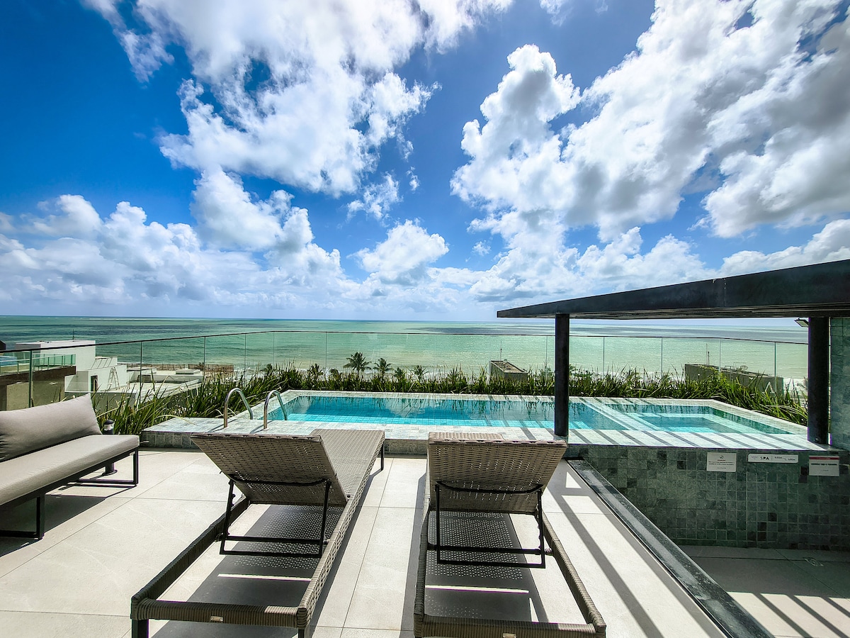 Apartamento novo em prédio pé na areia, de frente para o mar do Bessa, com terraço privativo e piscina compacta, ideal para momentos de relaxamento! O espaço é automatizado com Alexa e acomoda confortavelmente 4 hóspedes, sendo 100% equipado e funcional. Ideal para quem busca conforto, localização estratégica e uma ótima experiência!