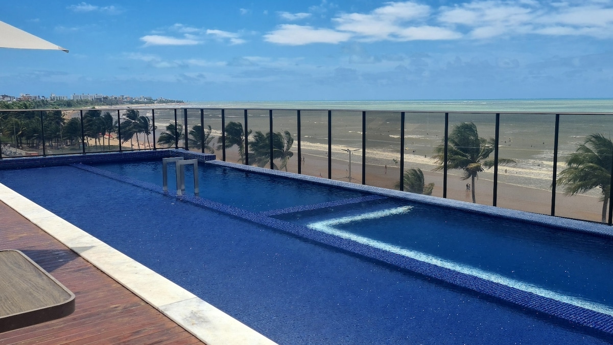 Excelente apartamento, beira mar. Praia de Intermares /Cabedelo. Pôr do Sol do Jacaré , Areia Vermelha. Possui 2 quartos climatizados (sendo 1 suíte), com 2 cama de casal .Wc social, sala de estar, cozinha completa, varanda e 1 vaga na garagem. Vc vai se surpreender com essa estadia maravilhosa e confortável em uma das melhores praias da região. Grande diferencial , maravilhosa area de lazer, com uma piscina de borda infinita. Paraíso único e essencial para viver momentos unicos .