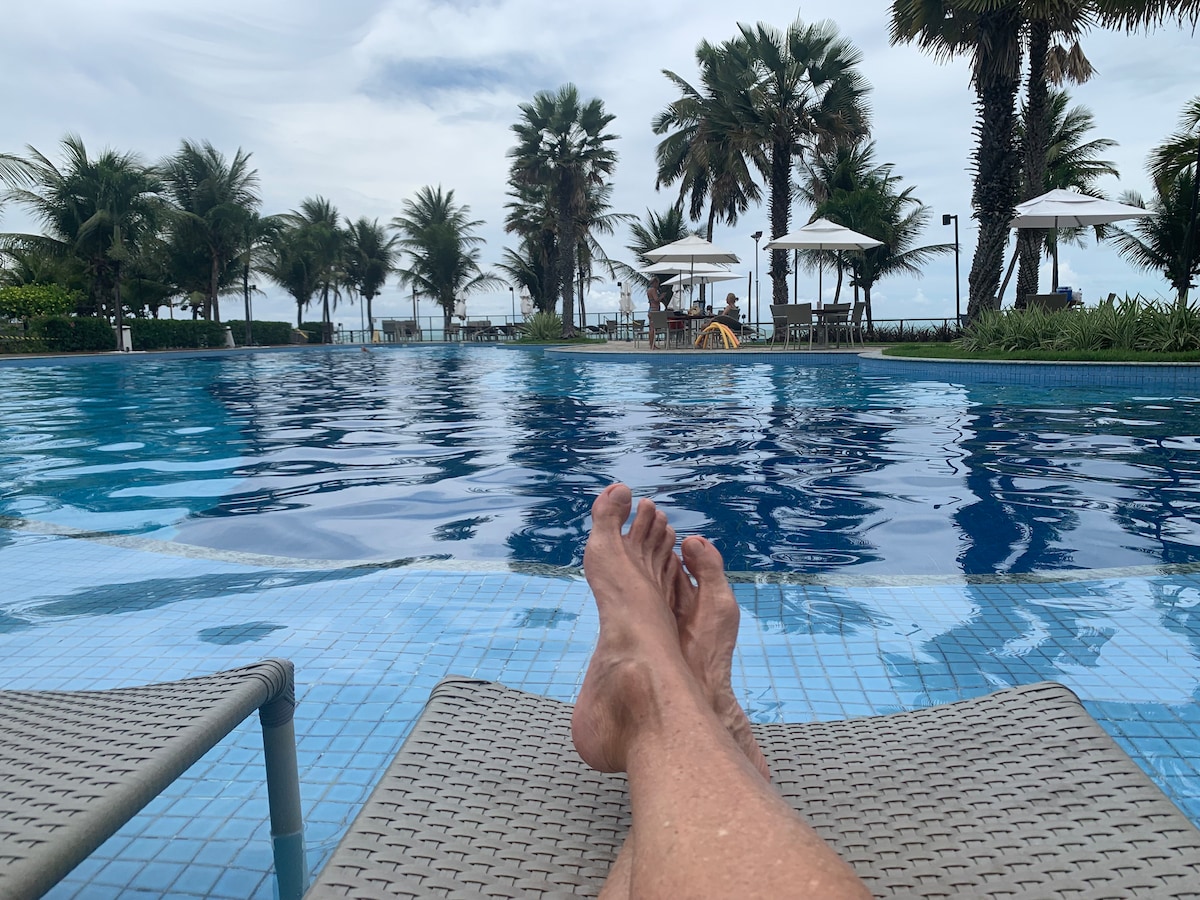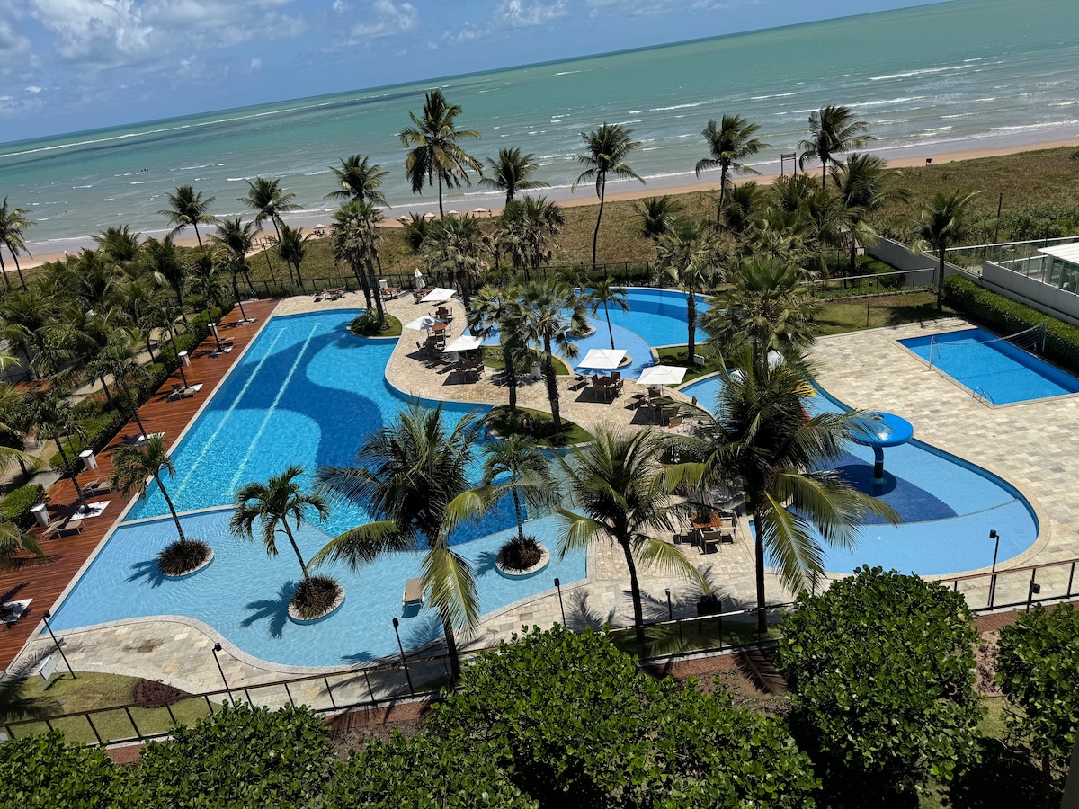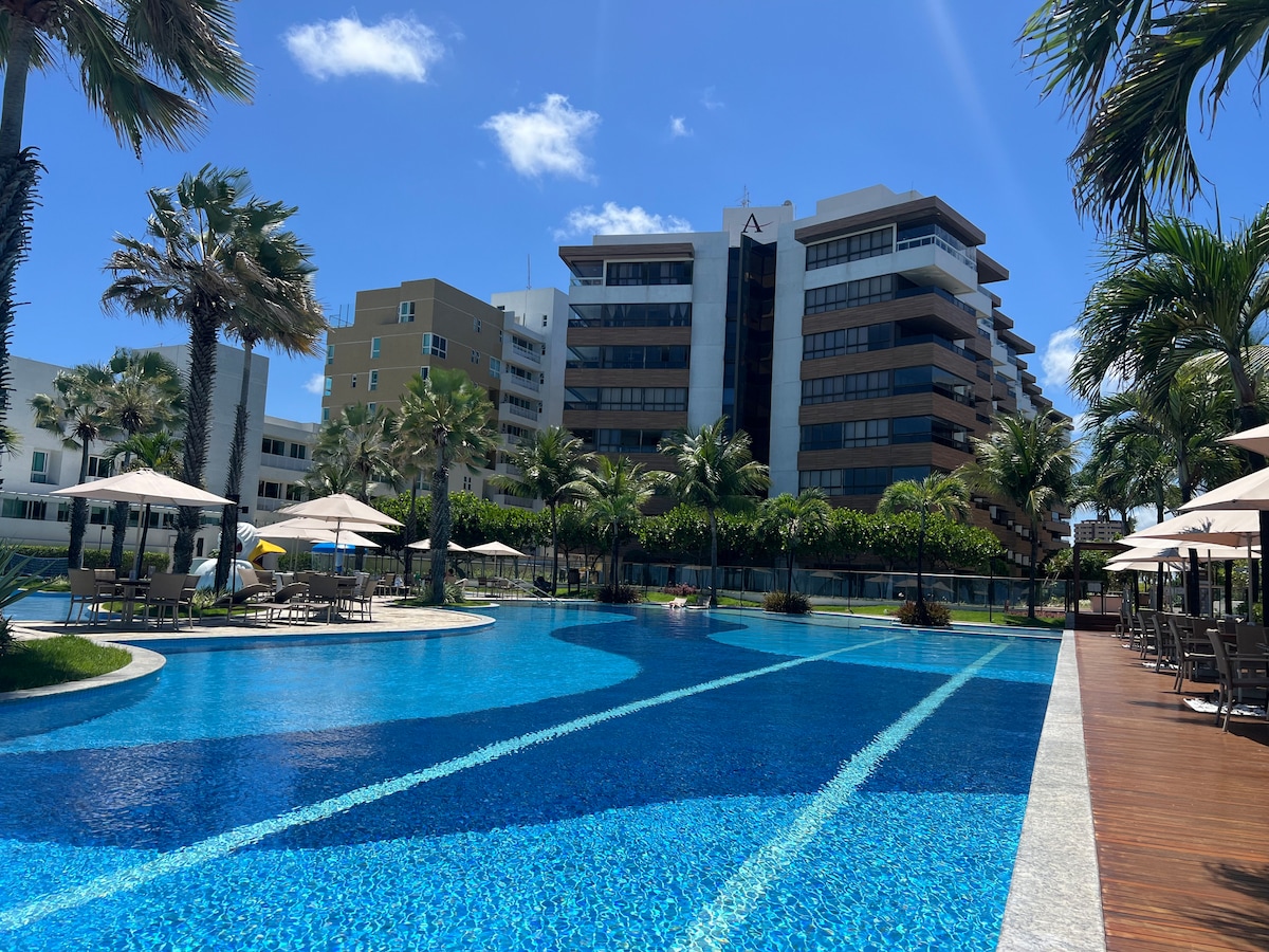 Venha descansar num lindo condomínio residencial comparável a um resort, com piscinas, spa, sauna, churrasqueira, sala de jogos teen e adulto, sala de leitura, academia, brinquedoteca, parquinho para crianças, serviço de guarda sol na praia e muitos outros atrativos. E pra completar, o seu quintal será o mar.