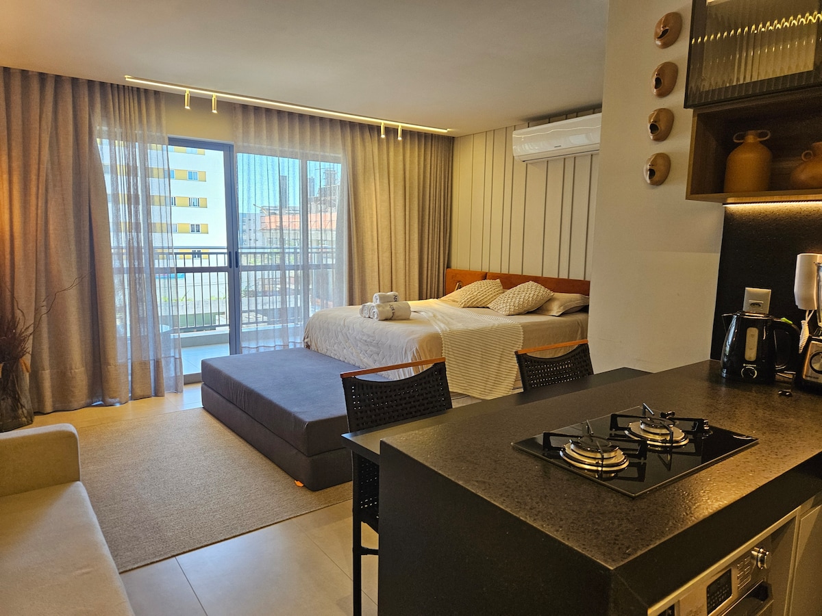 Relaxe neste lugar único e tranquilo! Loft novo, recém mobiliado, em frente ao mar do Bessa, perfeito para famílias pequenas (até 4 pessoas) ou para viajantes individuais. Está dividido da seguinte maneira: suíte de casal com cama queen com smart TV e estação de trabalho, cozinha completa com principais utensílios, sala-de-estar que possui um sofá-cama tamanho cama de casal, smart TV e uma varanda frente mar deliciosa com uma belíssima vista do primeiro amanhecer das Américas.