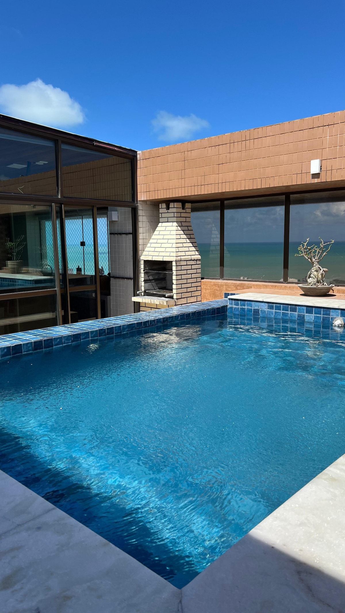 No ponto mais privilegiado da melhor Praia de João Pessoa. PISCINA PRIVATIVA com vista incrível do mar e das praias, e mais de 300m2 de área, para conforto e lazer de toda família. São 03 (ou 04) suítes amplas, que acomodam bem 09 (ou 12) pessoas . Para grupos acima de 09 pessoas, disponibilizamos mais uma suíte completa e com acesso independente, com uma vista para o mar. Roupa de cama e banho para todos, cozinha completa, freezer, máquina de lavar, Wi-Fi, TV a cabo.