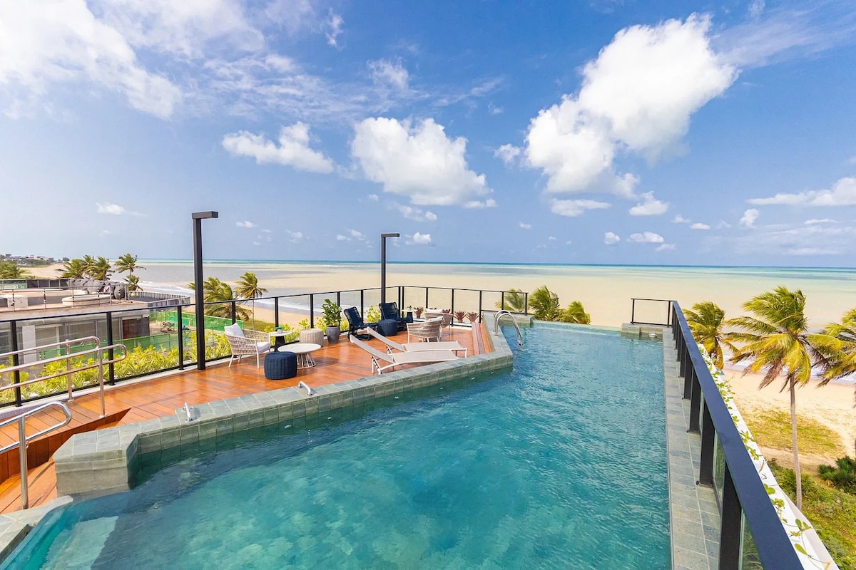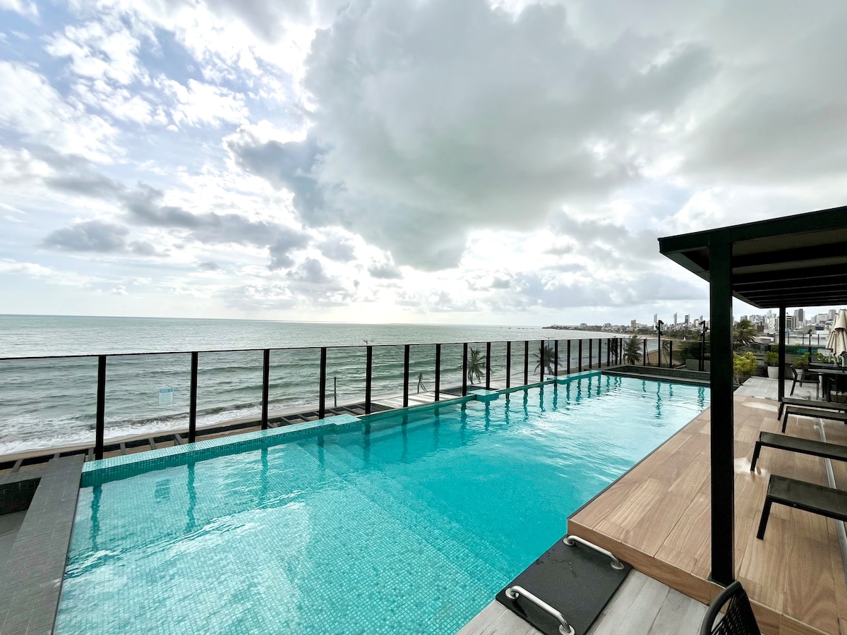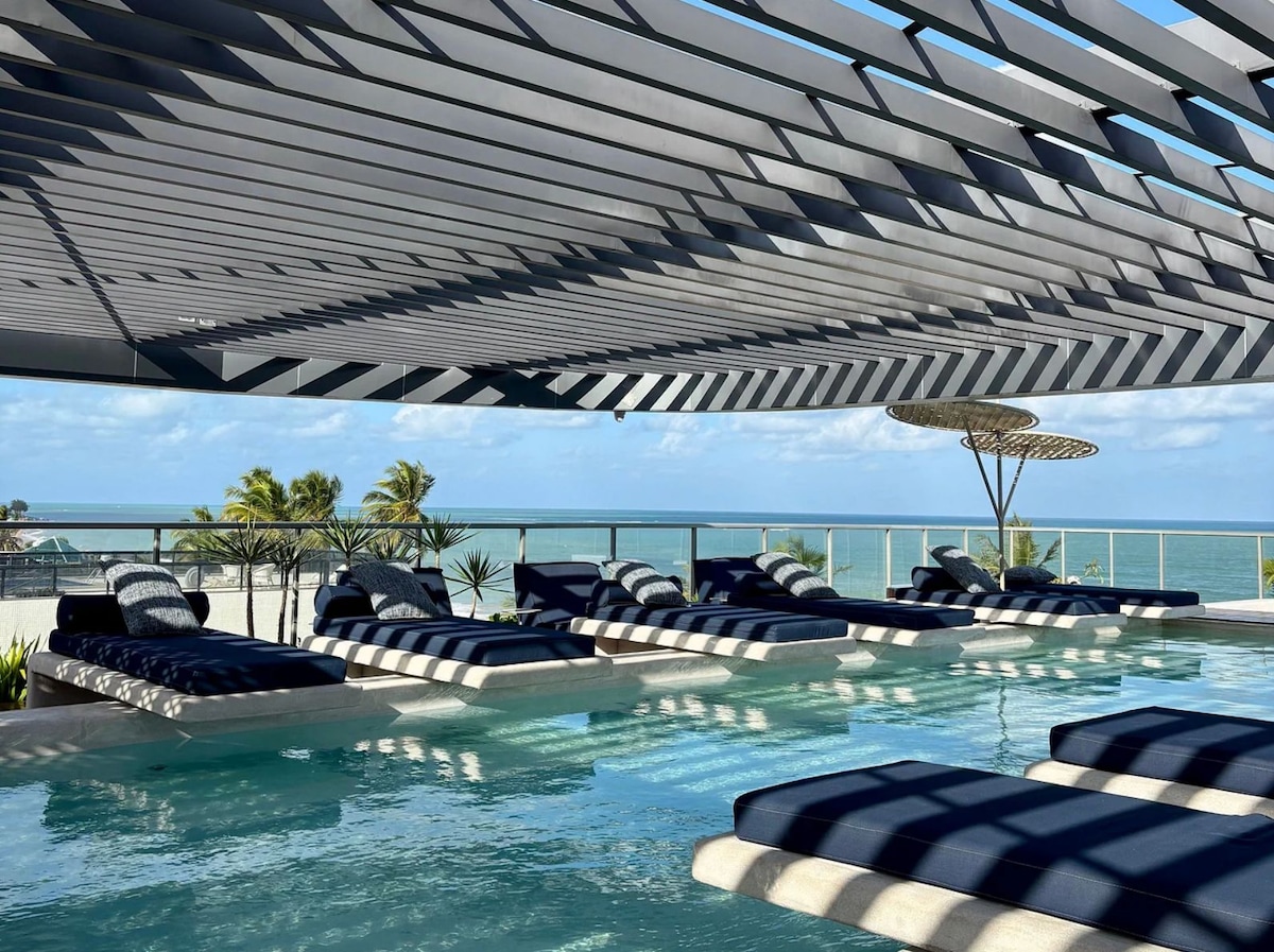 Seu refúgio à beira-mar da praia do Bessa espera por você Com acesso direto à praia, o flat oferece uma localização imbatível para quem quer relaxar com o mar de águas mornas a poucos passos O prédio tem RoofTop com piscina de borda infinita, sauna e espaço gourmet, tudo para momentos de lazer. Já no flat, o conforto se faz presente: cama de casal, ar-condicionado, SmartTV, cozinha equipada e banheiro privativo. Sinta-se em casa, perto de tudo que precisa para uma ótima estadia.