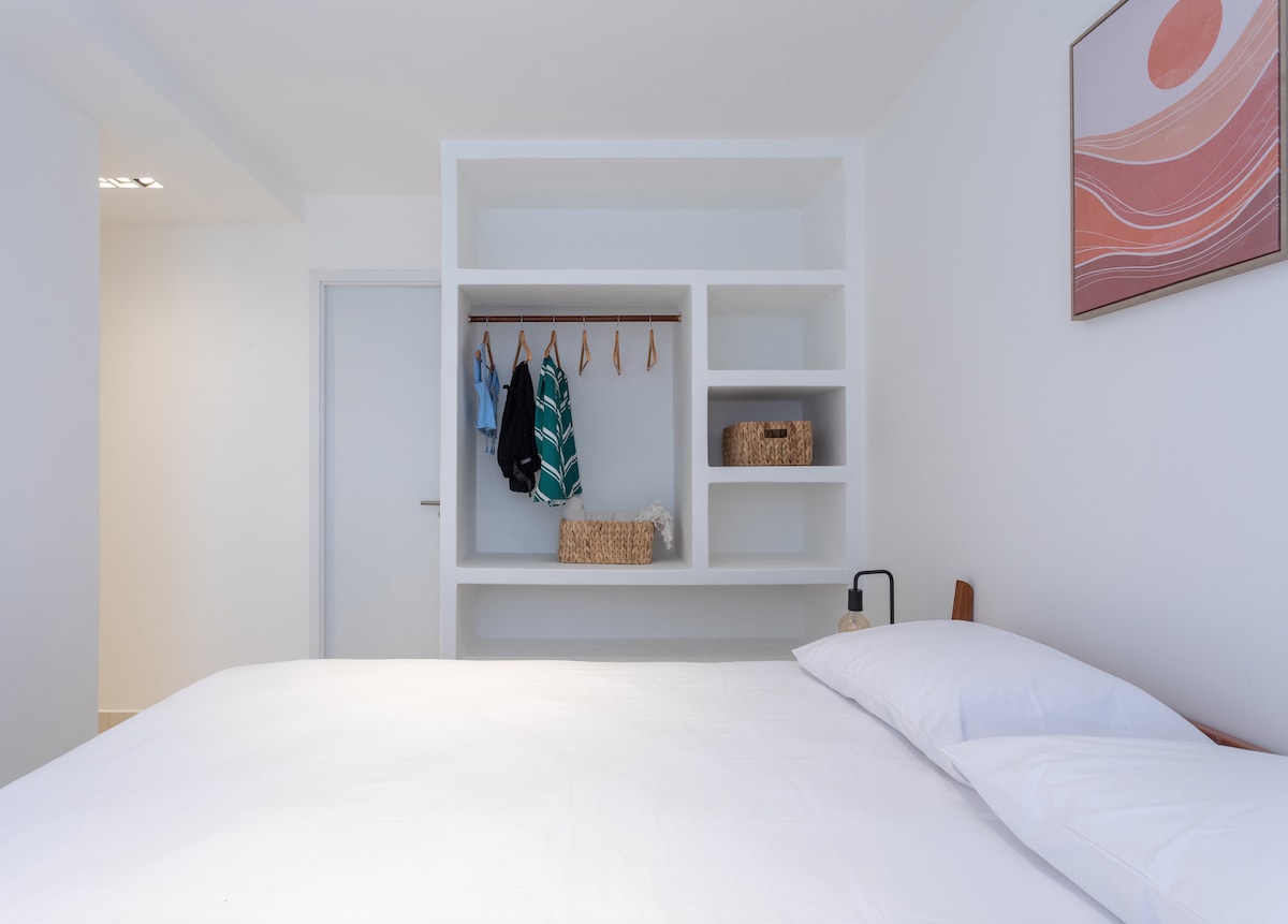 Descubra um pedaço da Grécia à beira-mar no Setai Aquamaris! Este charmoso flat de 23m² combina o charme das ilhas gregas com todo o conforto moderno. Decorado em tons de branco e azul, com elementos inspirados em Santorini e Mykonos. Com varanda ampla de 7m² e vista lateral para o mar, o flat é perfeito para casais ou pequenas famílias. O prédio conta com piscina de borda infinita no rooftop, sauna, jacuzzi, academia e bar.
