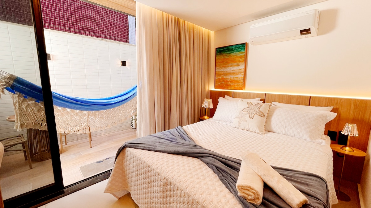 Flat moderno e completo em João Pessoa – localização privilegiada em Manaíra. Pensado para casais e viajantes exigentes, este flat une aconchego, estilo e praticidade em uma das regiões mais valorizadas de João Pessoa. Com design contemporâneo e atmosfera acolhedora, o espaço oferece uma experiência de hospedagem confortável, funcional e bem localizada, ideal para quem busca relaxar ou trabalhar com tranquilidade.