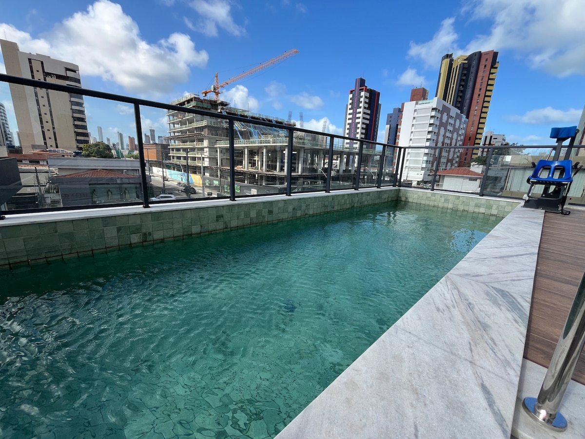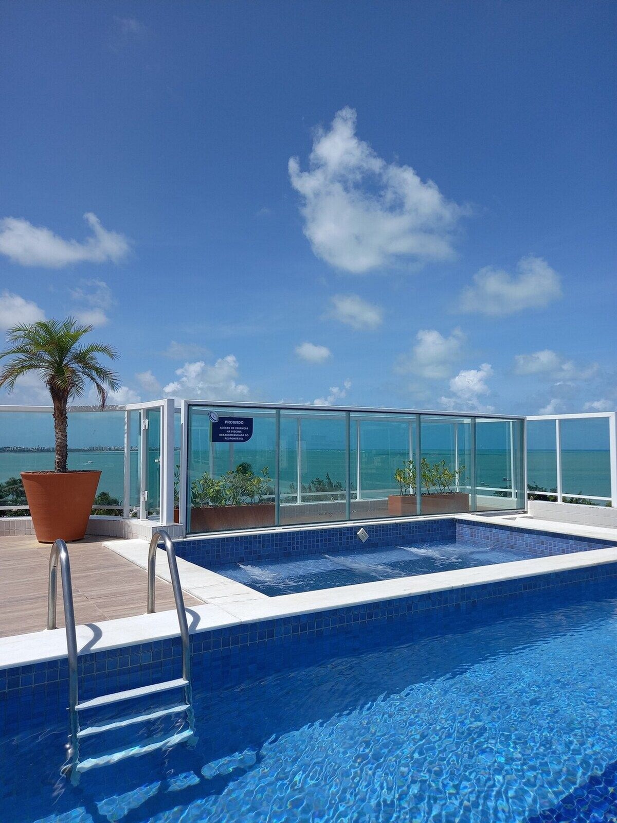 O Paraíso no Bessa - Luxuoso flat com jacuzzi privativa, pé na areia na praia do Bessa. Nossa acomodação é perfeita para quem busca conforto, elegância e uma vista de tirar o fôlego ! Área externa privativa com uma linda jacuzzi particular. Quarto e sala climatizados, cozinha completa, Wi-Fi, Smarts TV sala. O condomínio possui uma piscina incrível na cobertura, academia, sala de jogos, lavanderia e coworking. Localizado perto de restaurantes, bares e com serviço de praia em frente ao prédio.