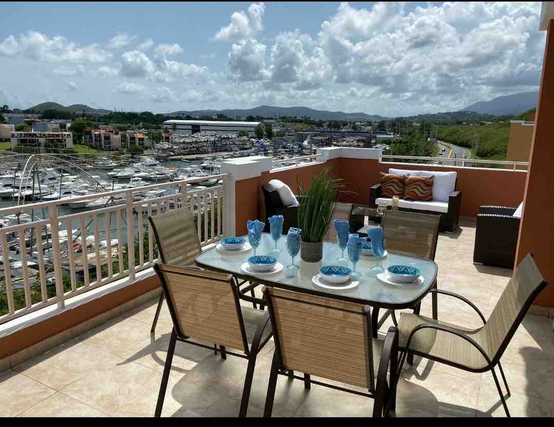 3 bdrm luxury condo, with amazing ocean and marina views. Furnished with a king, a queen and 2 bunk beds, AC and TVs in all rooms. Fully equipped kitchen w/many amenities. Great for family or couples get away! 3 pools, gym, basketball & tennis courts on site. Beach towels, chairs and cooler provided. Walk to the marina, restaurants and minutes drive to 7 Seas beach. About 20 min drive to El Yunque and the ferry to Vieques & Culebra. Property manager bilingual. Airport pick available -addtl.