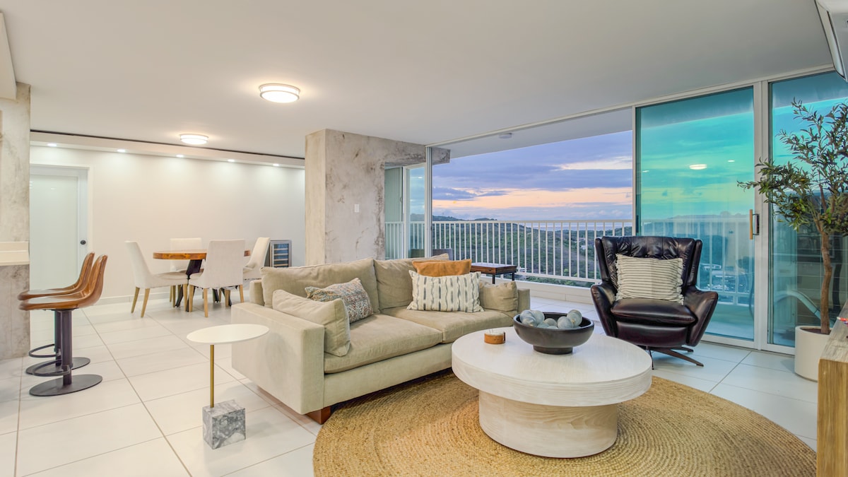 Perched sky-high on the 26th floor in sunny Fajardo, Puerto Rico, this newly-remodeled suite is your dream escape for laid-back lovers, ocean chasers, and vibey vacationers. This one-of-a-kind space blends comfort, style, and that oh-so-satisfying “I-never-wanna-leave” feeling. Bay Cay Suite serves up panoramic ocean views so stunning, they’ll make your IG followers jealous. Just a 45-55 min drive from SJ's Airport, a 7-min drive away from top beaches & a 30-min drive from El Yunque.