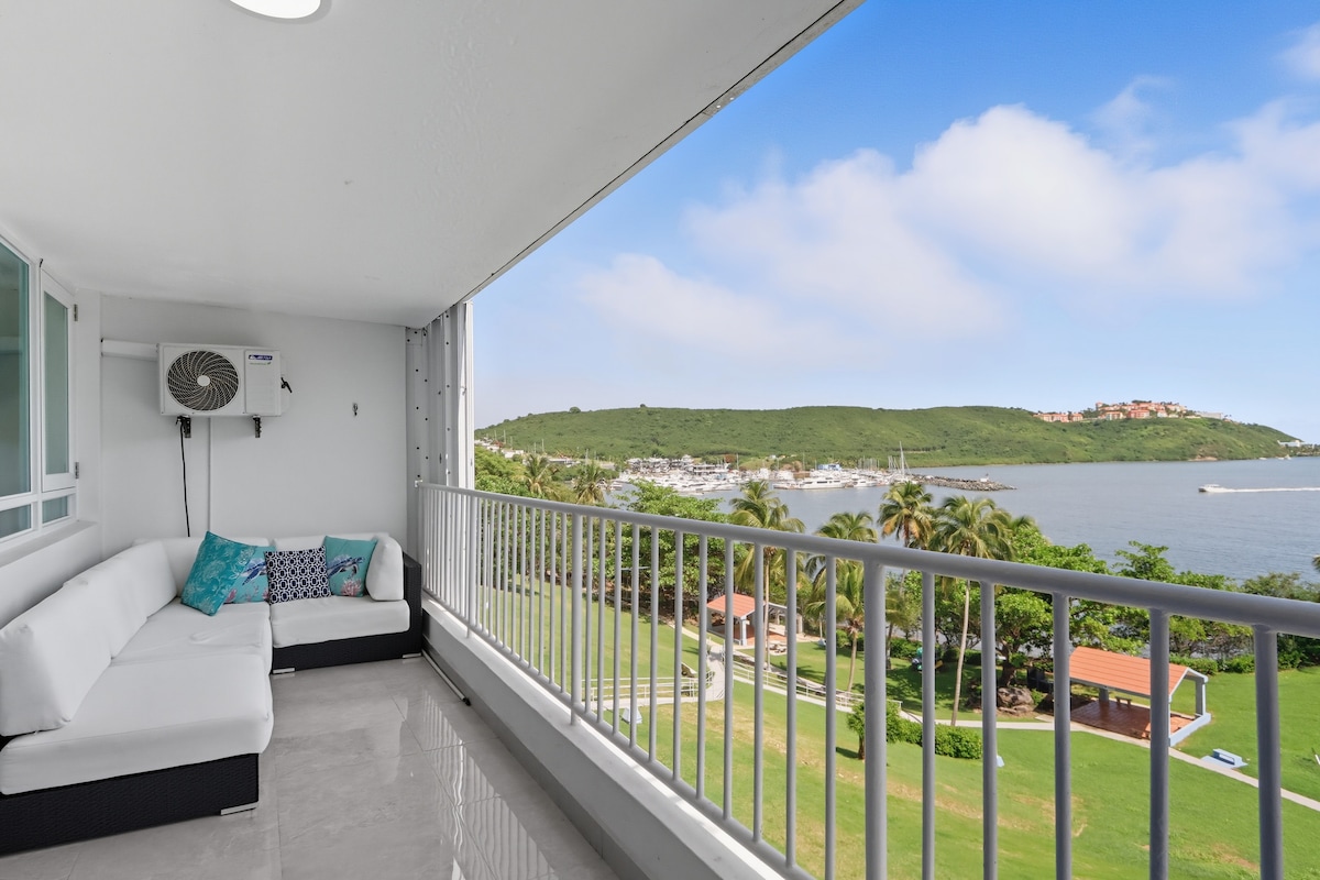 Beautiful condo with a spectacular view, where the Atlantic meets the Caribbean overlooking Palomino Island, nestled next door to the El Conquistador Hotel. Located in walking distance of wonderful restaurants, the Bioluminescent bay tour and the seven seas beach area. 7th floor, quiet, secure building with 24/7 security guards. King size bed and a brand new IKEA sleep sofa, new smart tv and stove - all your cooking utensils and daily essentials are provided.