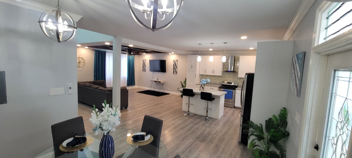 Stay in the HEART of Nassau in this modern 2BR condo walking distance in MINUTES to Beaches, The Fish Fry, Dining and top Attractions. Perfect for families, couples, and small groups, it offers a very comfortable living area, fully equipped kitchen, AC, fast Wi-Fi, and inviting king size bedrooms. After a day at the beach, the Fish Fry, or exploring downtown, walk to nearby restaurants and nightspots. Ideal for quick getaways or longer stays, this condo delivers comfort and convenience.