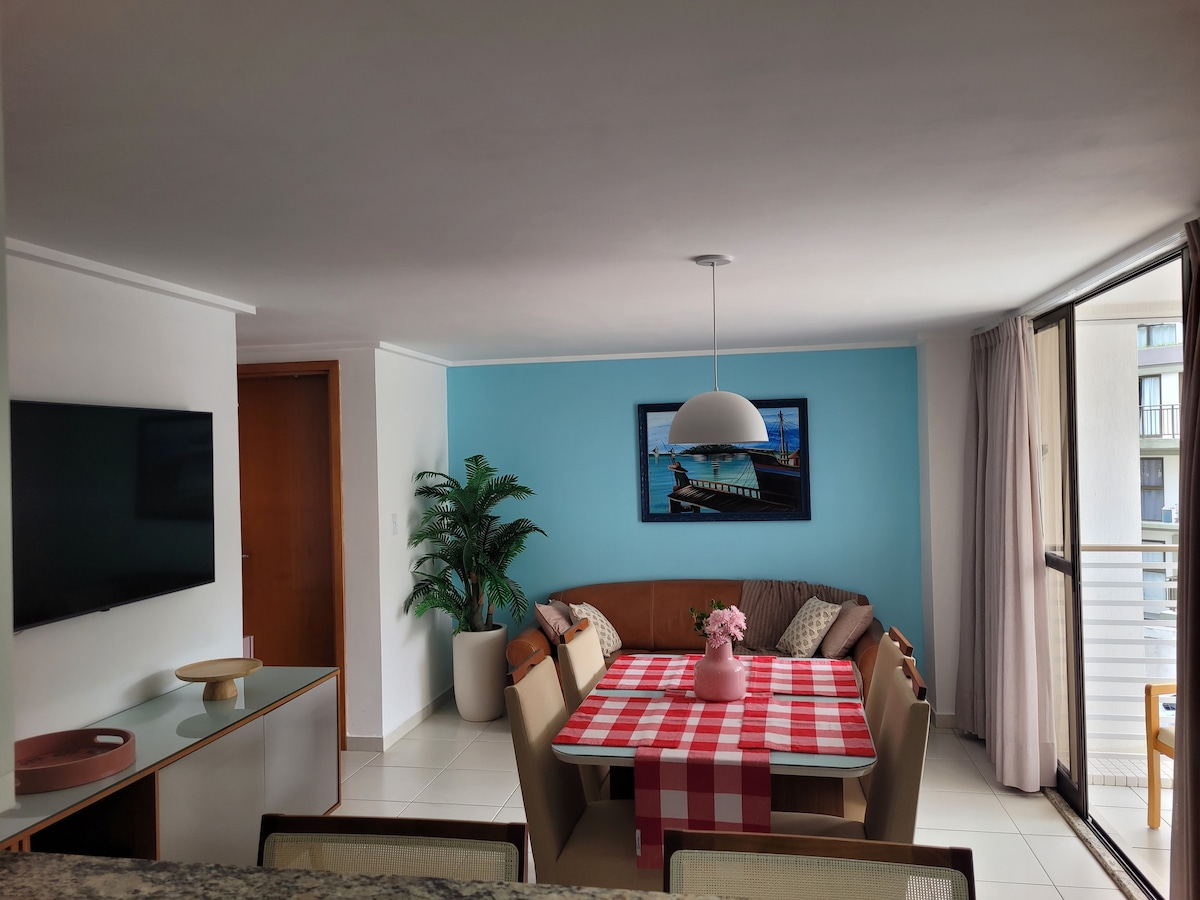 Relaxe com toda a família neste flat mobiliado beira-mar em excelente localização ao lado do Food Parque Cabo Branco com 2 quartos, sofá-cama e garagem. O Puerto Ventura conta com piscina cobertura, lounge, lobby, restaurante, academia, lavanderia, home cinema, brinquedoteca e rooftop gourmet. Serviço de café da manhã à parte. Flat right on the beach, next to the Food Park Cabo Branco with 2 bedrooms and a sofa-bed, fully furnished, parking and breakfast apart. Nous parlons français.