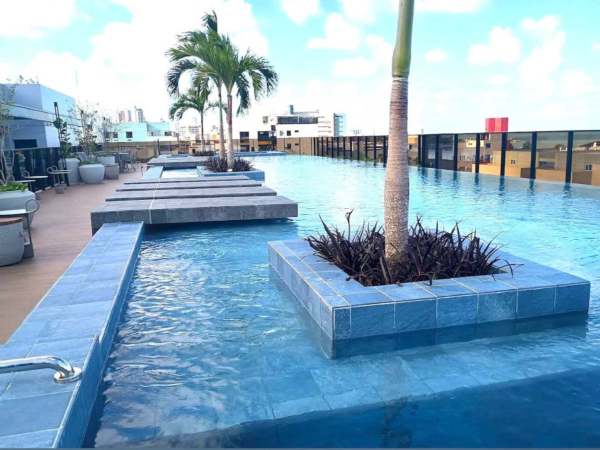 Cabo Branco海滨,带阳台/温水泳池