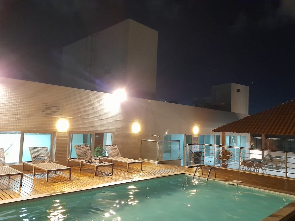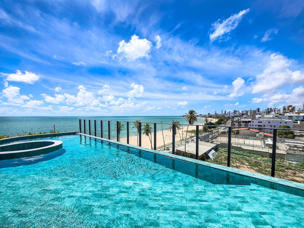 Wake up to the sound of the sea and enjoy relaxing days by the ocean, with a beautiful sea view. A complete retreat at Praia do Bessa, designed to offer comfort, convenience, and a hotel-style experience. Enjoy the rooftop pool with stunning ocean views — the perfect setting to unwind and slow down. The building features a restaurant serving breakfast (optional, not included in the rate), adding extra convenience to your stay. Beach chairs and an umbrella are provided.