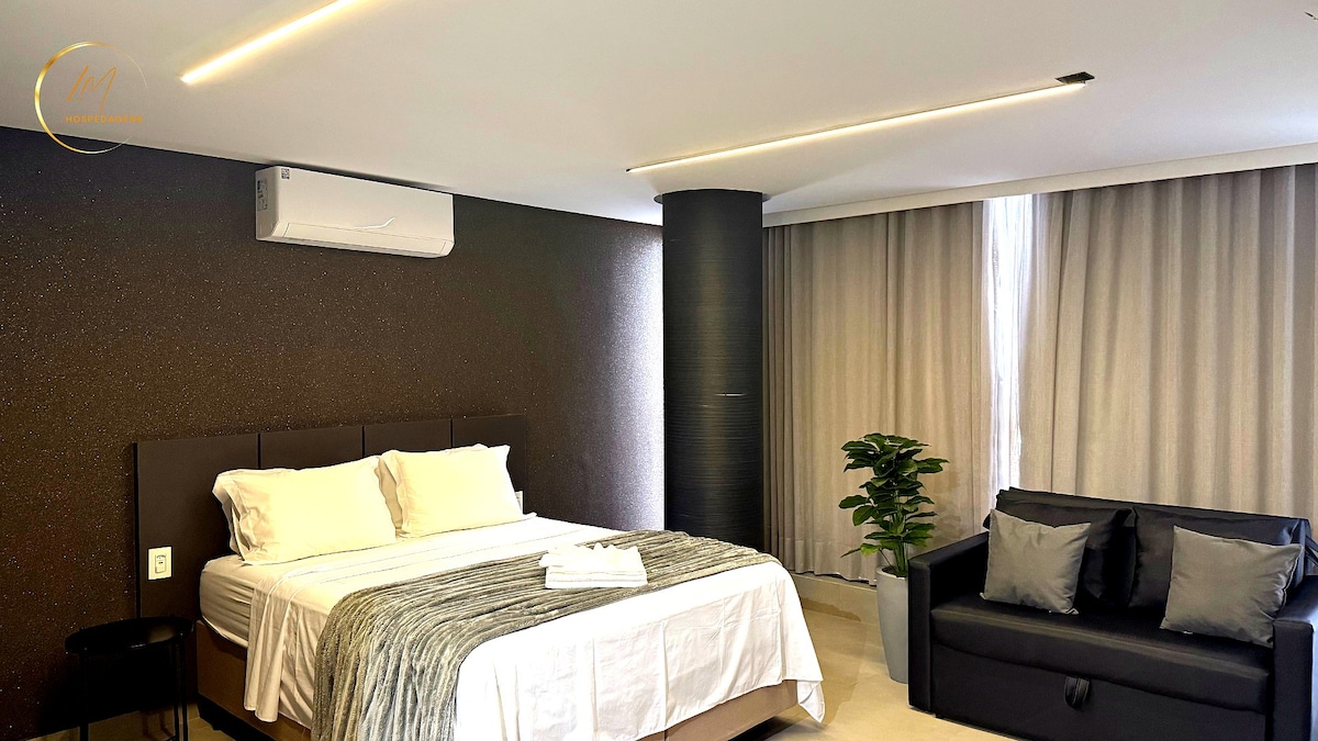 Studio diferenciado com 31 m², acima do padrão do condomínio, totalmente projetado com iluminação planejada e espaços bem aproveitados. Possui varanda com vista definitiva para o mar, a poucos metros da praia de Cabo Branco. Acomoda até 4 hóspedes, com cama Queen e sofá-cama, além de ar-condicionado e Wi-Fi. Condomínio estilo resort com piscina, recepção 24h, café da manhã opcional e garagem rotativa, em excelente localização.