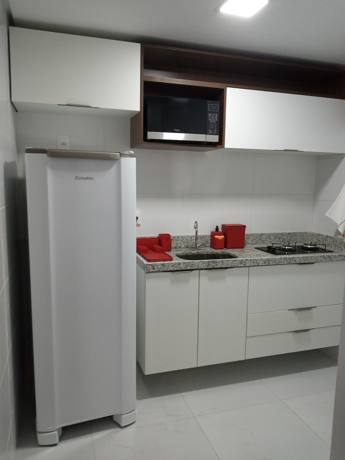 Apartment on a high-end beachfront building in Jardim Oceania. Accommodates up to 4 guests, with 1 suite (queen bed) and 1 bedroom (queen bed), spacious living room, gourmet area with electric grill, fully equipped kitchen, and laundry area with washing machine. The building offers a rooftop pool with ocean view, gym, kids’ playroom, coworking space, and shared laundry. Restaurants, pharmacies, markets, and shopping mall within 500m. Ideal for comfort and prime location.