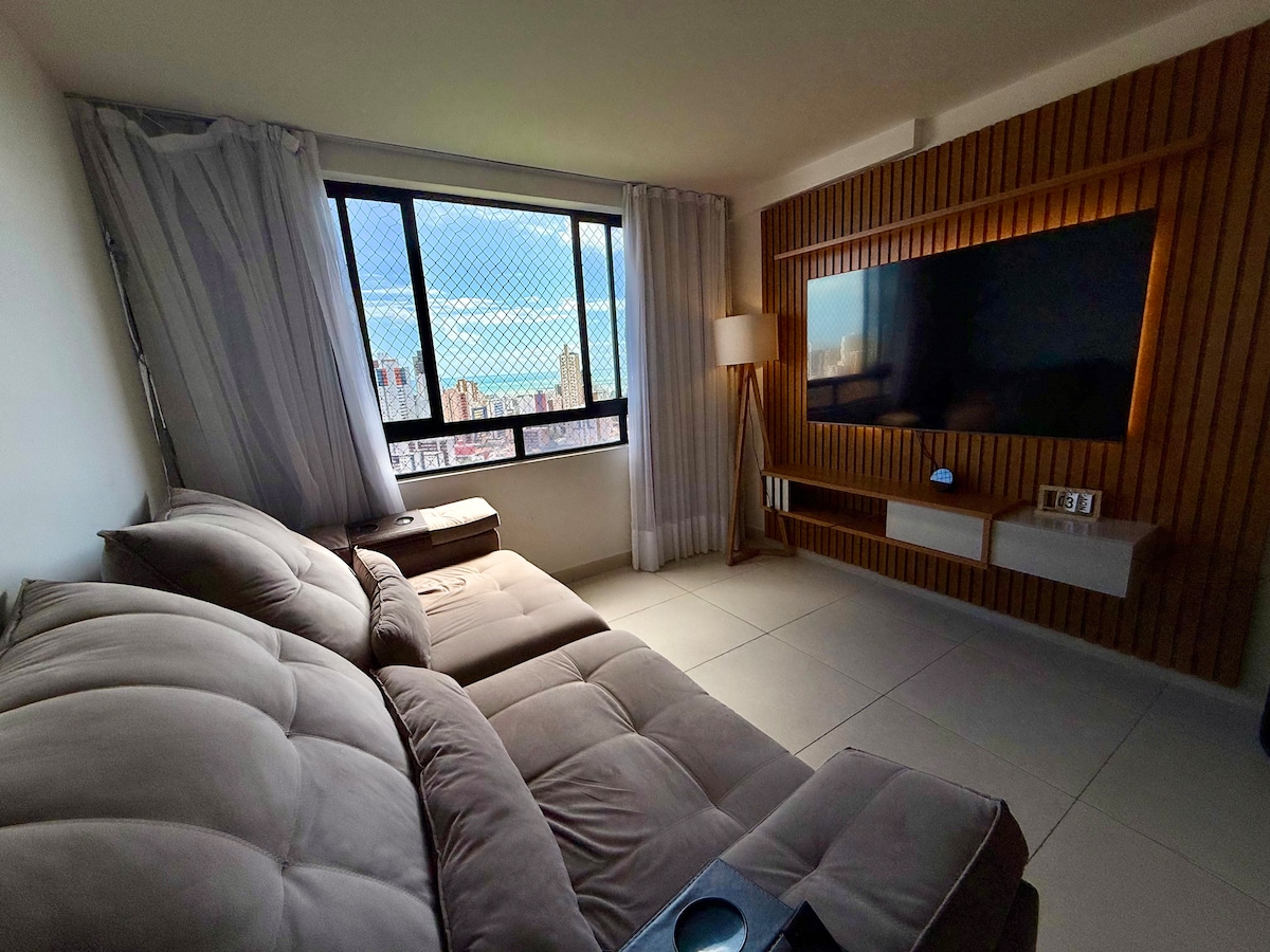 Você vai se hospedar no flat mais bem equipado de João Pessoa, com piscina de borda infinita e vista para o mar na cobertura, sala de cinema, área kids, salão de jogos e espaço office. No apartamento, você conta com toda infraestrutura para sua estadia: fogão por indução, microondas, cafeteira nespresso, frigobar, todos os utensílios de cozinha, armários, cama confortável, SmartTv e Wifi. Tudo isso a apenas uma quadra da famosa praia de Tambaú.