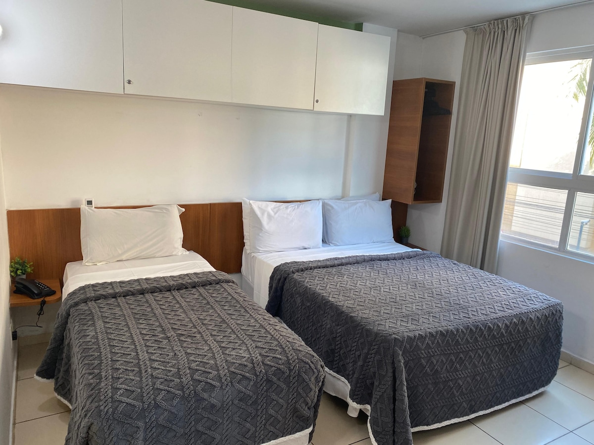 O Flat 403 é mais do que uma hospedagem: é um convite à contemplação. Localizado em um dos pontos mais encantadores da orla de João Pessoa. A unidade conta com uma cama de casal e outra de solteiro e varanda. Com estrutura moderna, o hotel oferece no roof top uma piscina com vista para o mar, lounge externo e bar, além de academia, smart market, com recepção funcionando 24h. Hospede-se conosco e descubra o prazer de desfrutar de momentos inesquecíveis em João Pessoa.