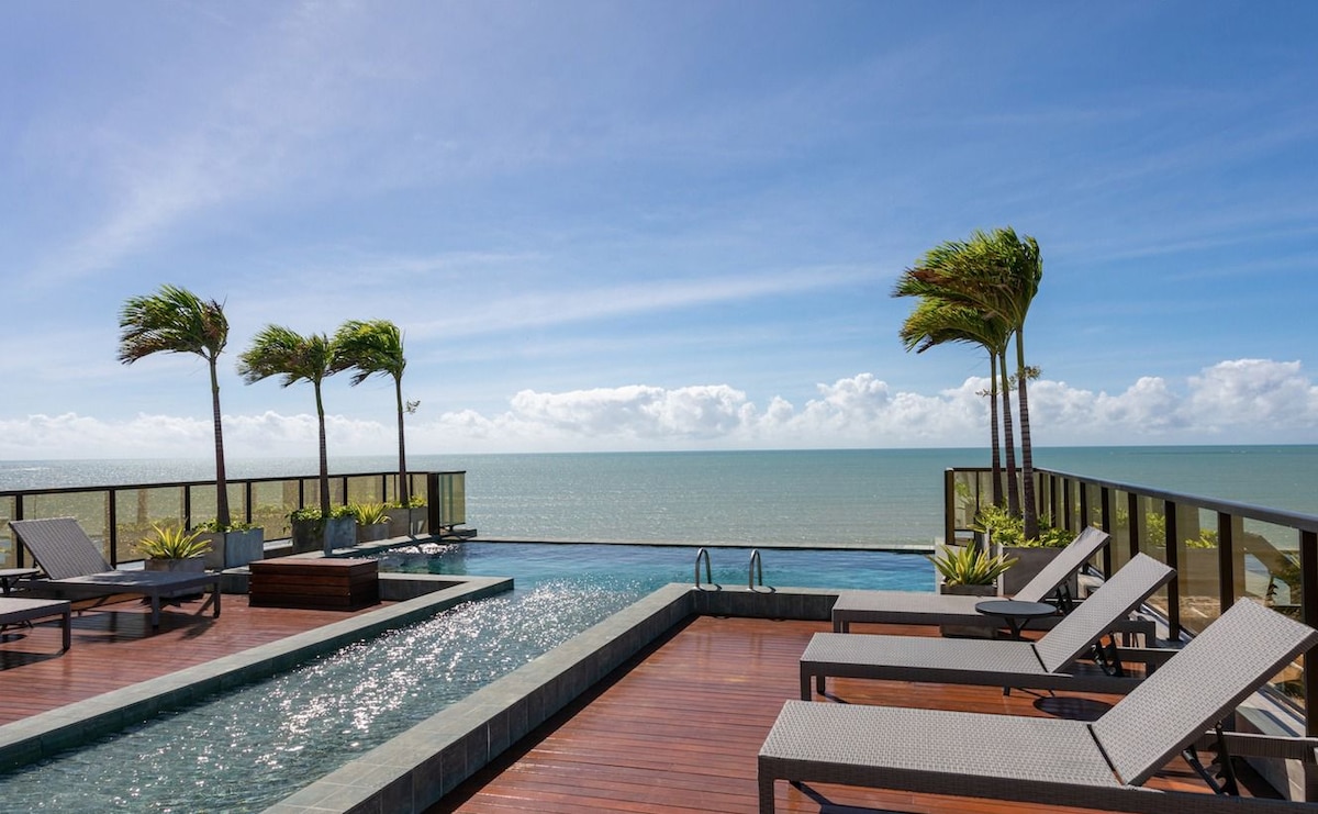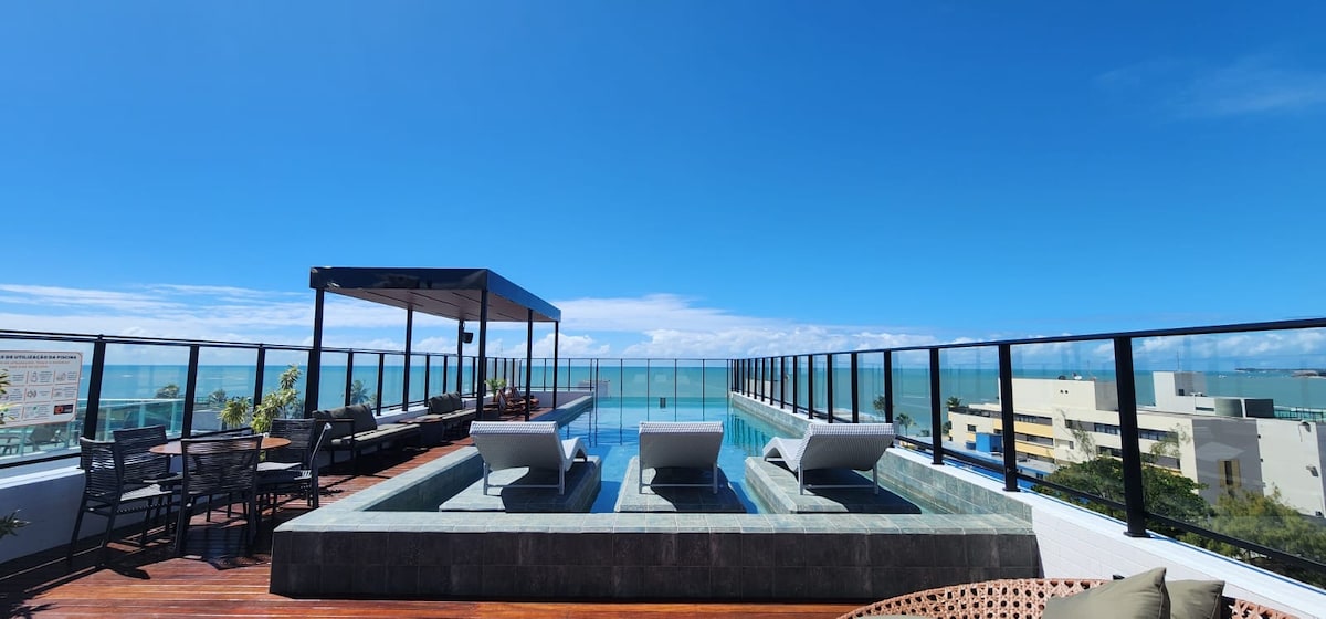Belíssimo flat beira-mar em João Pessoa com piscina no rooftop, academia, brinquedoteca, espaço cowork, maravilhoso café da manhã com preço justo, lavanderia, carregador p/ veículos elétricos, extremamente bem localizado, vizinho ao MAG shopping, padaria, Bobs, Mc donalds, Manaira Shopping. O melhor da capital