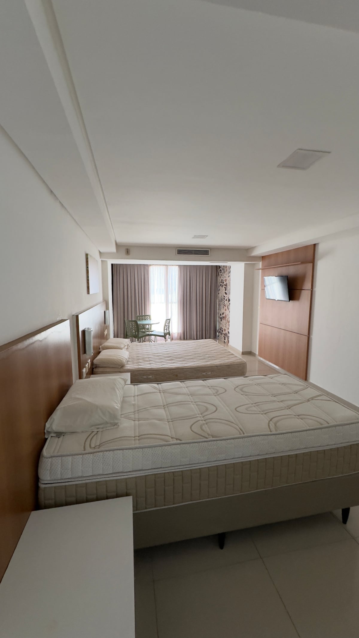 Flat 33m2, prédio frente mar na principal avenida turística de João Pessoa. Dispomos portaria 24h, garage, caiaque, bike, churrasqueira, hidromassagem, piscina, academia, restaurante/café, coworking e lavanderia. Nossa unidade tem espaço para receber cadeirante. Ar condicionado, fogão, geladeira, micro ondas, sanduicheira, utensílios para preparo de refeição, banheiro espaçoso, secador de cabelo, vaporizador de roupas. Cama queen, cama solteiro e cama auxiliar.
