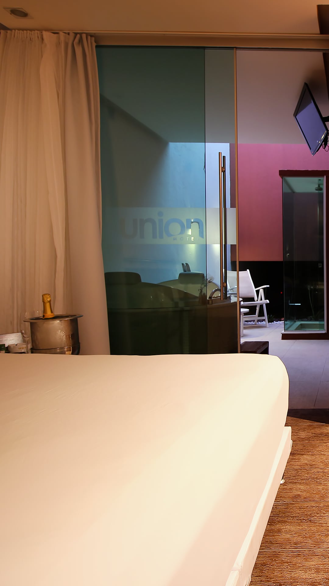 Suíte no Motel Premium Union ✅Inclui um super café para 2 ✅Hidro relaxante na área externa ✅Cama king ✅Iluminação aconchegante ✅Smart Tv Youtube Netflix ✅Soundbar, Wi-Fi e ar-split ✅Cozinha contemporânea e japonesa 24h ✅No ponto turístico Praia do Jacaré, onde há passeios de lancha Opcional: pacote romântico com Lençóis vermelhos de cetim, pétalas, espumante, mesa posta etc. para datas inesquecíveis por mais 150,00 Permitido apenas para maiores de 18 anos, não aceitamos crianças nem PETs