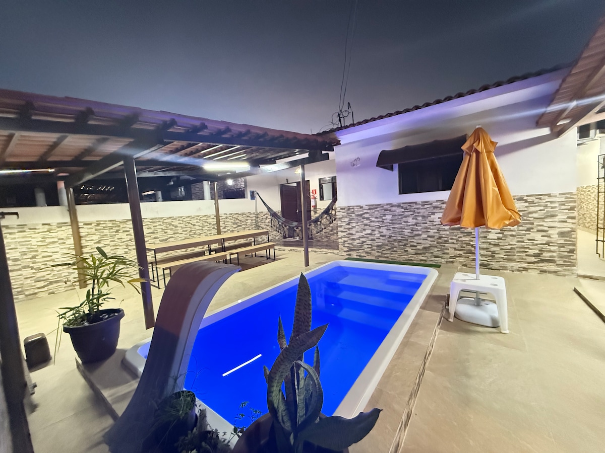 Além de ter uma PISCINA EXCLUSIVA, a CASA está a poucos passos da praia! Totalmente mobiliada, oferece lençóis e toalhas no padrão HOTELARIA, wi-fi de alta velocidade e quartos climatizados para seu total conforto. Aproveite a área de lazer com jardim, redário, ombrelone e uma área de churrasqueira. Localizada próxima a uma variedade de opções gastronômicas, mercados, postos de gasolina, pontos turísticos e praias deslumbrantes, esta acomodação é perfeita para até 6 pessoas. Somos petfriendly.