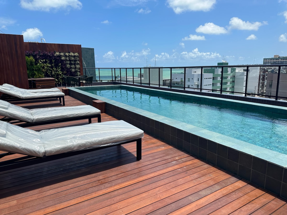 Você vai se hospedar no flat mais bem equipado de João Pessoa, com piscina de borda infinita e vista para o mar na cobertura, sala de cinema, área kids, salão de jogos e espaço office. No apartamento, você conta com toda infraestrutura para sua estadia: fogão por indução, microondas, cafeteira nespresso, frigobar, todos os utensílios de cozinha, armários, cama confortável, SmartTv e Wifi. Tudo isso a apenas uma quadra da famosa praia de Tambaú.