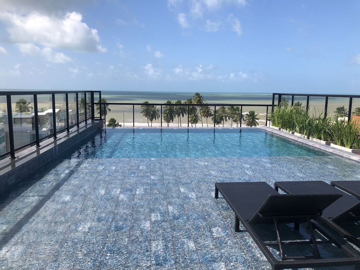 New 44m² apartment just 50m from Cabo Branco beach. Private jacuzzi (non-heated), spacious bathroom, ground floor, no stairs. On the rooftop: infinity pool and heated jacuzzi, both with ocean views. Includes full linen set, extra bed, air conditioning, dishes, SmartTV, minibar, and Nespresso coffee machine. The building offers co-working space, Wi-Fi, gym, 24h front desk, rotating parking, and buffet breakfast available on-site (charged separately).