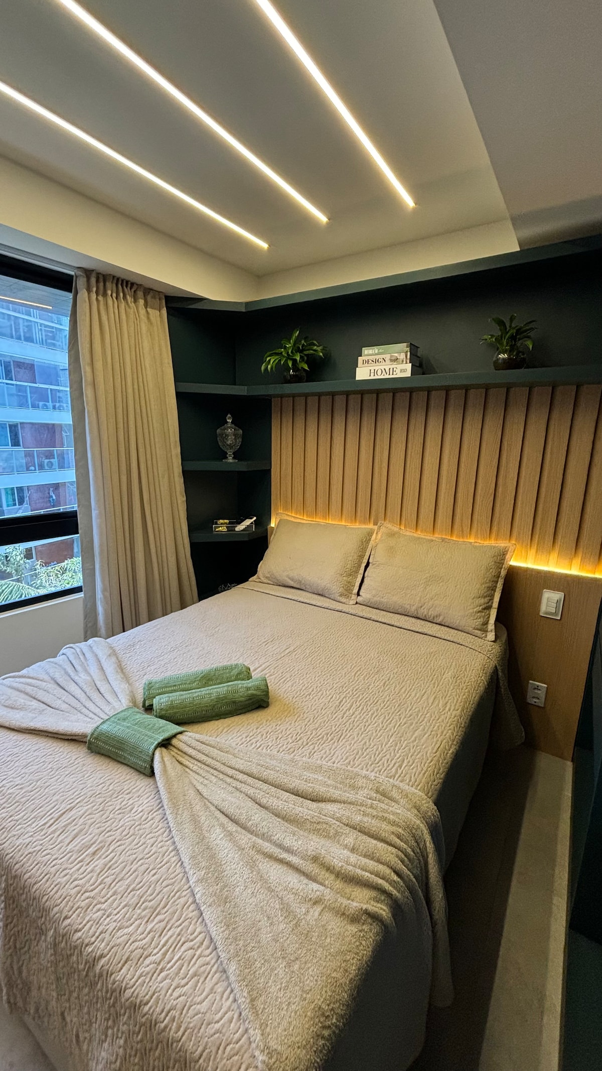 Relaxe neste espaço calmo e cheio de estilo. Perto da praia. Excelente localização. Vizinho a mercado e próximo a farmácias, lanchonetes e restaurantes. Tudo para aproveitar ao máximo a sua estadia. O apartamento é novinho e confortável, com roupas de cama e banho disponíveis, cozinha completa, ar condicionado nos quartos. O prédio Conta com 2 elevadores sociais, área de lazer belíssima com piscina na cobertura com vista panorâmica para toda a orla. PETs apenas de pequeno porte são permitidos.