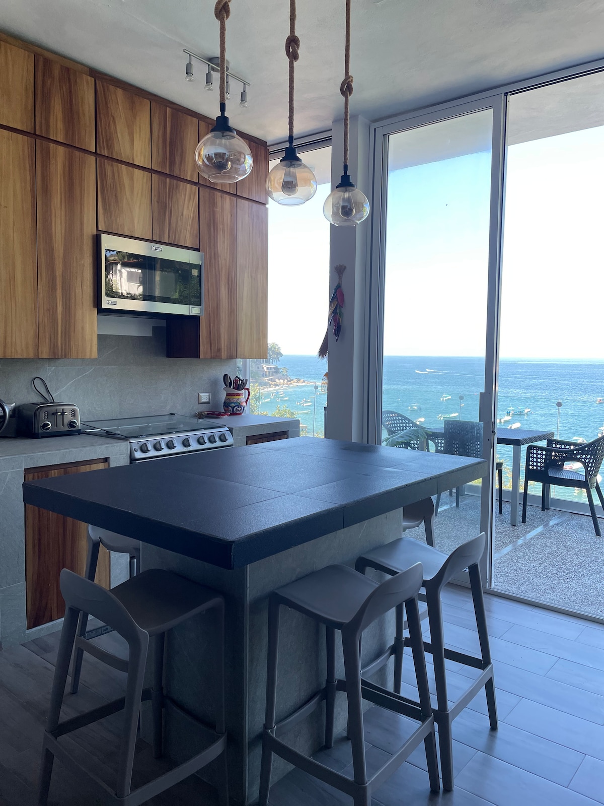 Desde este alojamiento podrás disfrutar de una vista increíble en el 4 piso terraza con vista al mar es céntrico todo cercas el muelle, la cascada, restaurantes, tiendas, farmacias, y sobretodo la maravillosa playa a 3 minutos Este alojamiento cuenta con chimenea decorativa & electrica