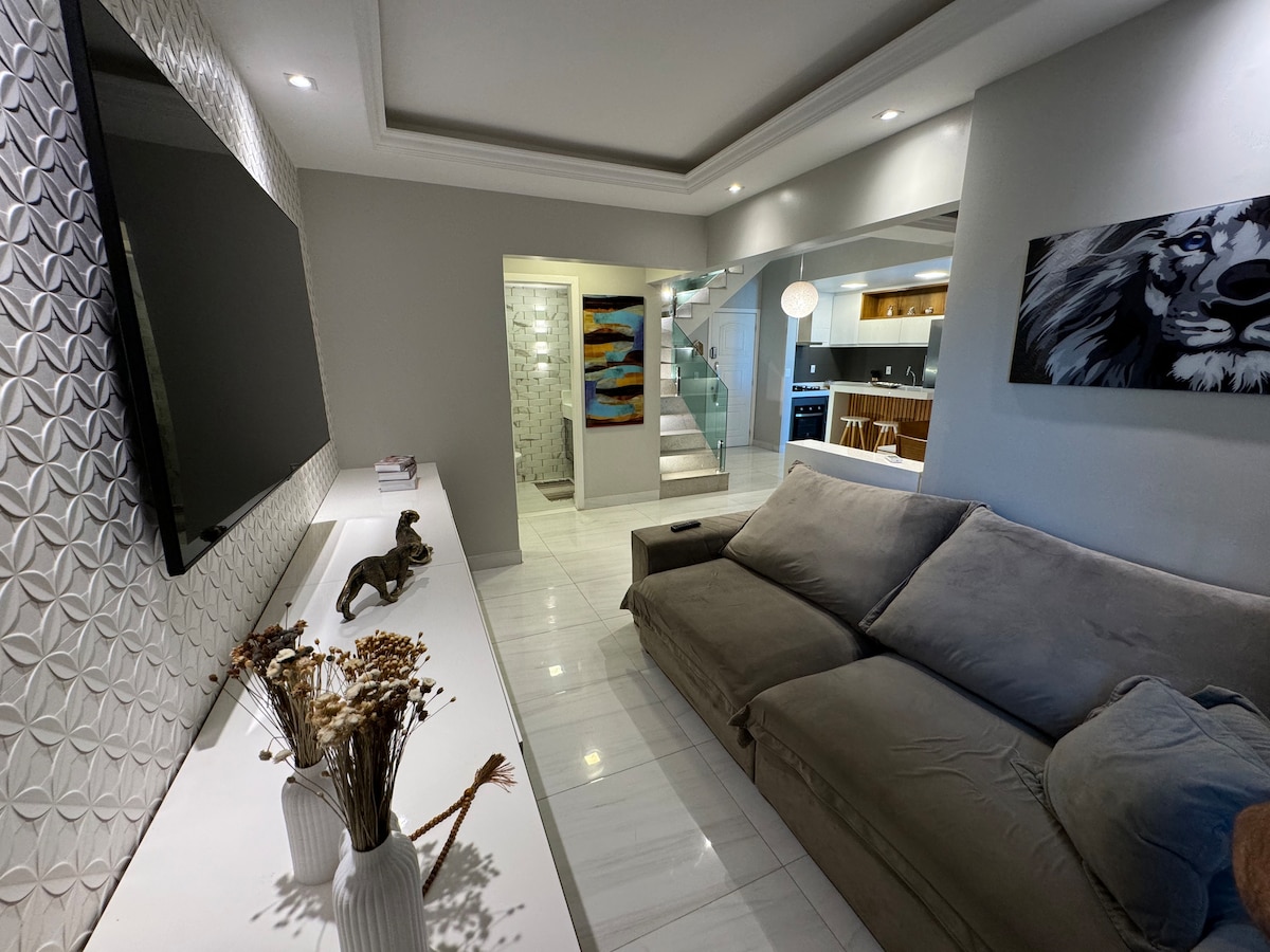 Descubra a Casa Tropical, recém inaugurada, foi toda reformada e decorada para ser um refúgio à beira-mar. A 100m da Praia do Forte e seu cenário paradisíaco, está na melhor localização de Cabo Frio, em rua tranquila e dentro de um bairro seguro e vibrante, com vida noturna e diurna, ao lado da feira do artesanato e da pista de skate, quiosques, restaurantes e muito mais. O espaço é completamente preparado e equipado para gerar aquela sensação de aconchego e conforto para os seus dias de férias.