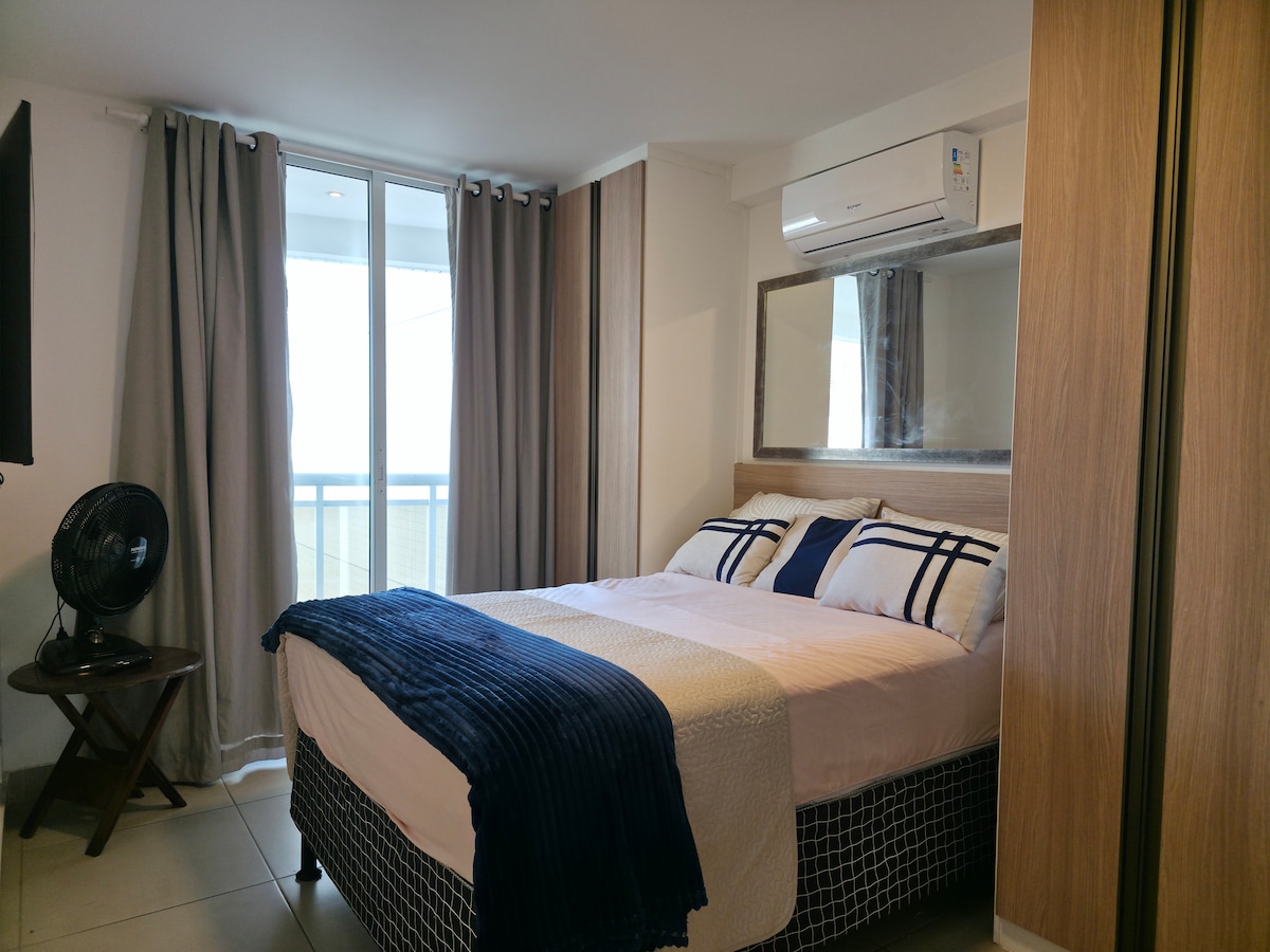 Nossa acomodação foi projetada para que você tenha muito conforto e praticidade em sua hospedagem! O flat 401 é apartamento da linha luxo, com 38 m² que possui como diferencial uma varanda ampla com vista para o canal Itajuru.Fica há 100 mts do centro gastronômico com diversos restaurantes,bares com música ao vivo e há 700 mts da Praia 🏖️ do Forte.Já com estacionamento coberto incluso no próprio Prédio .
