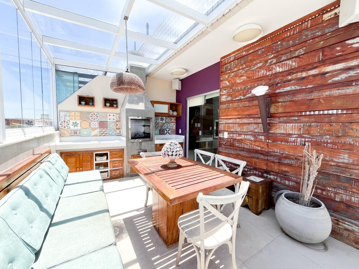 Cobertura Duplex de Alto Padrão na Praia do Forte – Piscina Privativa e Sofisticação Desfrute dias incríveis nesta cobertura duplex moderna e elegante, localizada em um dos endereços mais desejados da Praia do Forte. Perfeita para famílias ou grupos, acomoda até 10 pessoas com total conforto. O apartamento foi pensado nos mínimos detalhes para oferecer experiência de hospedagem de alto padrão, com ambientes amplos, bem decorados e totalmente equipados.