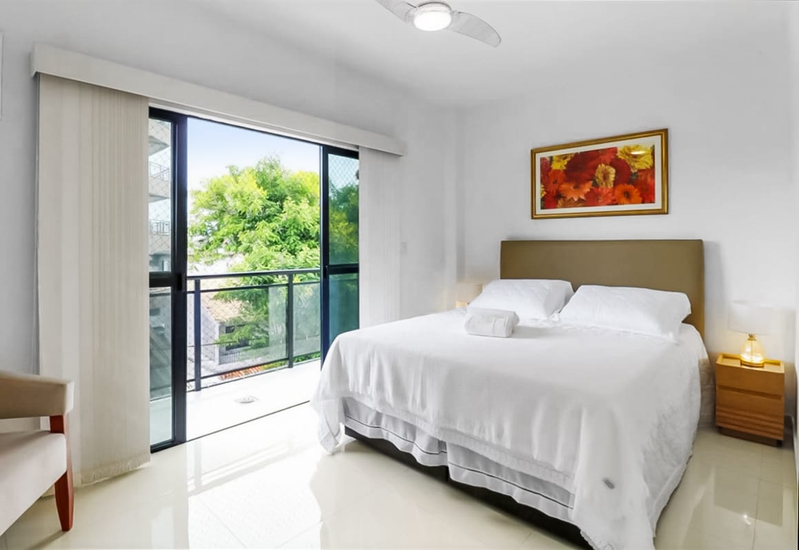 In the charming Passagem neighborhood — the most exclusive and peaceful area of Cabo Frio — just 5 minutes from Praia do Forte and next to the Picanha do Gugu restaurant, this modern apartment blends elegance and comfort. Air conditioning in the double bedrooms, 500 Mb internet, dedicated workspace, garage, and spacious beds ensure restful nights. The fully equipped kitchen features high-end appliances and a washing machine. We provide quality bed linens and towels and spotless cleaning.