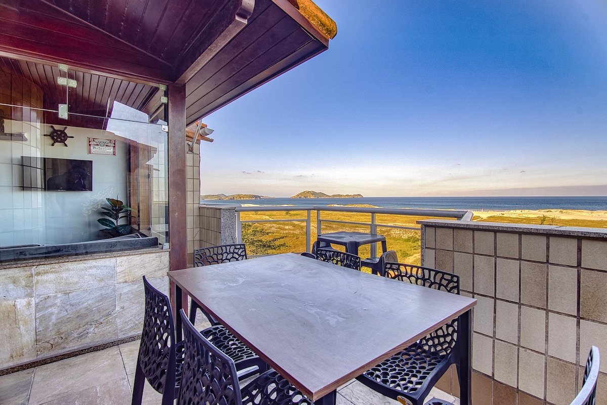 Casa Pé na Areia – Cabo Frio Desfrute do conforto desta casa de frente para o mar, ideal para até 6 pessoas. São 2 quartos (1 suíte) com ar condicionado, sala com TV, cozinha equipada, lavanderia e uma varanda perfeita para relaxar na rede admirando o nascer e o pôr do sol. O condomínio oferece segurança, salão de jogos e espaço para churrasco (taxa extra). A Praia das Dunas, com águas cristalinas e areia branca, está aos seus pés, entre a Praia do Forte e a Praia do Foguete.
