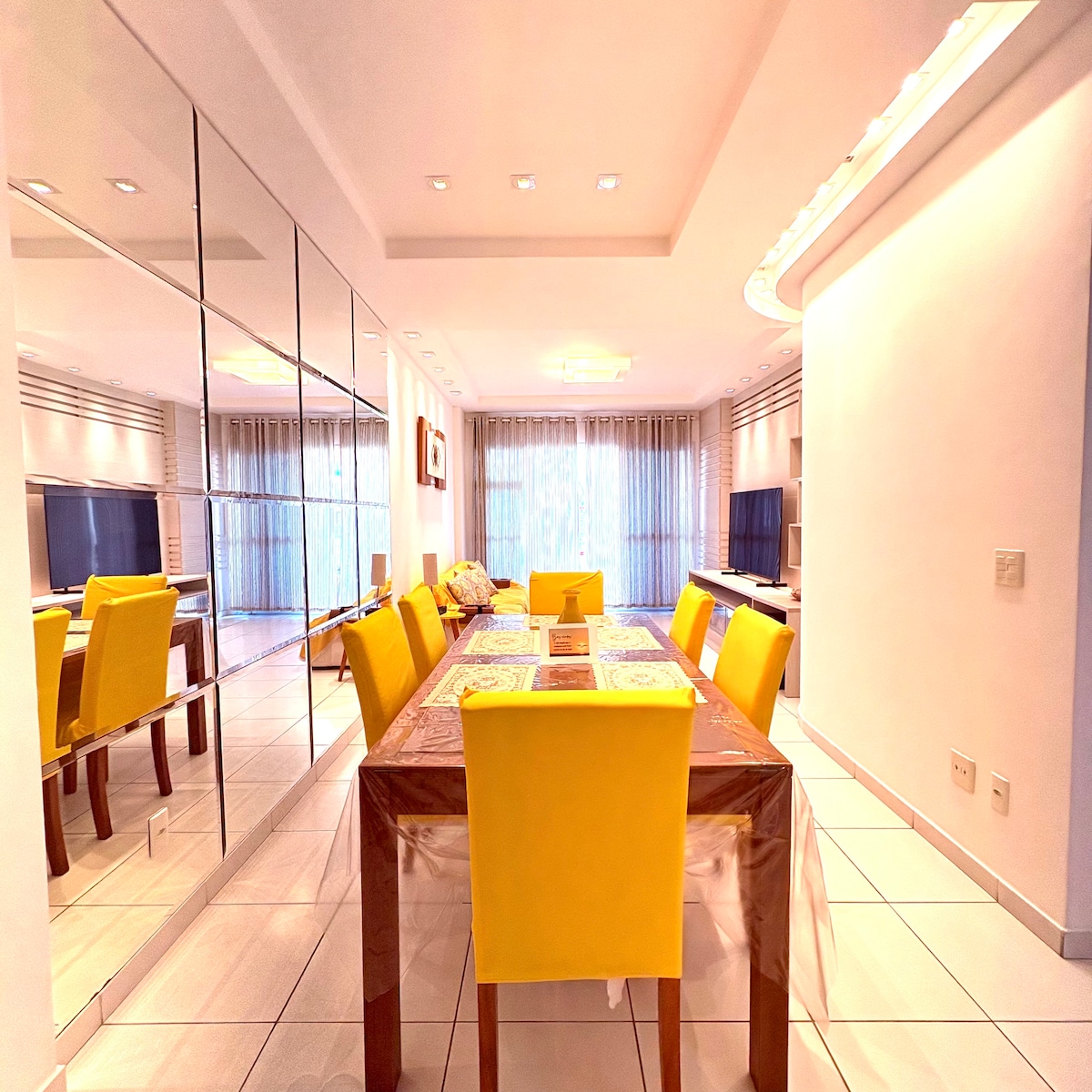 Apto de fino acabamento, em local nobre, na praia do forte, no melhor ponto para banho de mar, em Cabo Frio. Dispõe de : 3 quartos todos climatizados com ar condicionado, sala com iluminação em LED , também com ar condicionado. Área de lazer com piscina e churrasqueira. Rede com internet Wi-Fi Claro e vaga marcada na garagem para 01 (um) carro. Apto no segundo andar do prédio com elevador, de frente para a rua e com todas as TVs Smarts (quartos e sala). Sacadas não possuem rede de proteção.