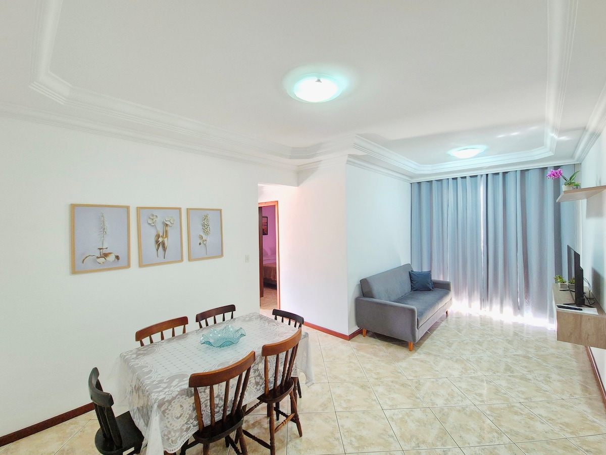 Amplo apto, para até 8 pessoas, a 3 minutos À PÉ da Praia do Forte. Composto por (i) ampla sala em dois ambientes com ventilador e varanda com rede, (ii) suíte com Ar Condicionado, cama queen size, smart tv e varanda, (iii) 2º quarto com Ar Condicionado, cama de casal e varanda, (iv) 3º quarto com beliche e ventilador, (v) cozinha completa, toda equipada, (vi) banheiro social e (vii) área de serviço. Smart TV na sala e suíte. Wi-fi. Limpeza e higienização impecáveis.