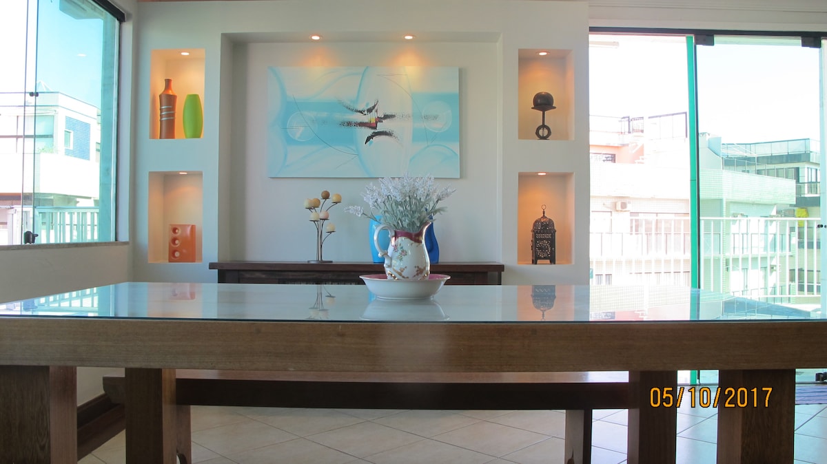 Estamos a uma quadra da Praia do Forte, na parte mais conhecida e badalada que é a do Hotel Malibu. O apartamento foi recentemente todo renovado para maior comodidade dos hóspedes, tendo 3 suítes super aconchegantes e uma 4a suíte menor, todas com split, e mais 2 Splits na sala. São 4 Smart TVs, Cervejeira, Air Fryer e vários outros itens de conforto. Sala espaçosa, cozinha equipada e uma área externa privativa com ducha, churrasqueira, bancada com pia, mesa, cadeiras e Umbrelone. Temos cooler.