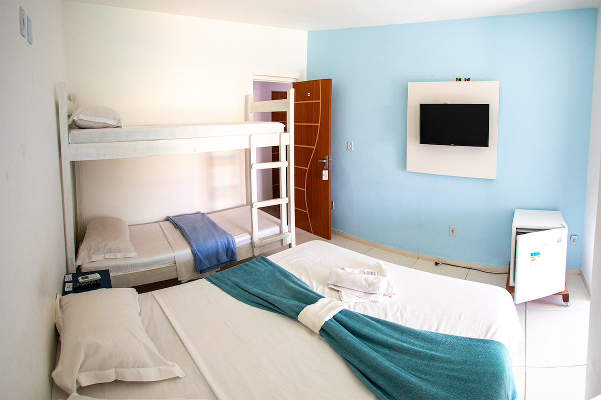 Acomodação projetada em padrão superior com 23 m², bem decorada e aconchegante com varanda lateral. Suíte particular administrada independente do Hotel Bossa Nova Cabo Frio. Você terá todo o conforto e segurança de uma nova e excelente estrutura.