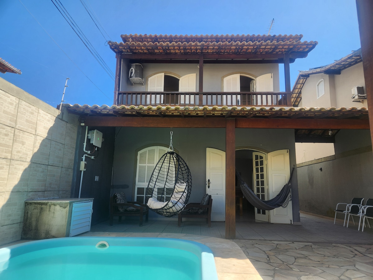 A casa é perfeita para quem deseja relaxar em um ambiente aconchegante e curtir em família ou com amigos. Suítes com ar-condicionado, ambientes integrados, cozinha equipada, sala de TV, área externa com chuveirão, ombrelone, churrasqueira portátil, mesa e sofás. Uma Prancha de Stand UP, algumas cadeiras de praia, 2 barracas de sol para garantir a diversão na praia. A casa fica a 3 min caminhando da Praia de Manguinhos. Perto de supermercados e restaurantes.