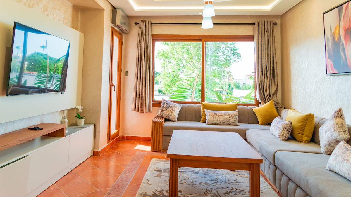 Welcome to our cozy apartment in Martil, just 5 minutes from the beach! It features AC in the living room and bedroom, year-round pools, a playground, and 24/7 security. Cafés, restaurants, and a supermarket are nearby. We prioritize cleanliness to ensure a comfortable stay for families and couples. Perfect for a relaxing vacation with your loved ones, and easily accessible to nearby attractions like Tetouan, Tangier, and Chefchaouen.