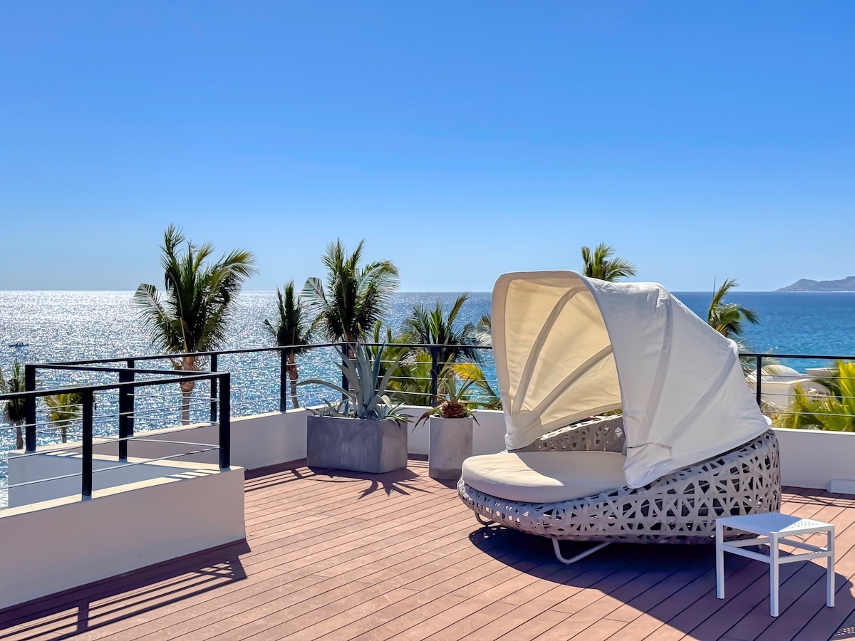 Where Desert Meets the Sea of Cortez. Stunning, Secure, comfortable, off-the-grid East Cape getaway. Empty beaches & warm turquoise water. Sunrise & sunset roof deck views. Gated security. Friendly & helpful staff. Your very own PRIVATE ROOF DECK with 360° views of sunrise, sunset, sea, mountains & stars. Fast Internet. Views of the Ocean the Surf & Whales in season. Experience Baja living at its best. Explore deserted beaches,stunning landscapes. 4 new restaurants within 15 minuets drive