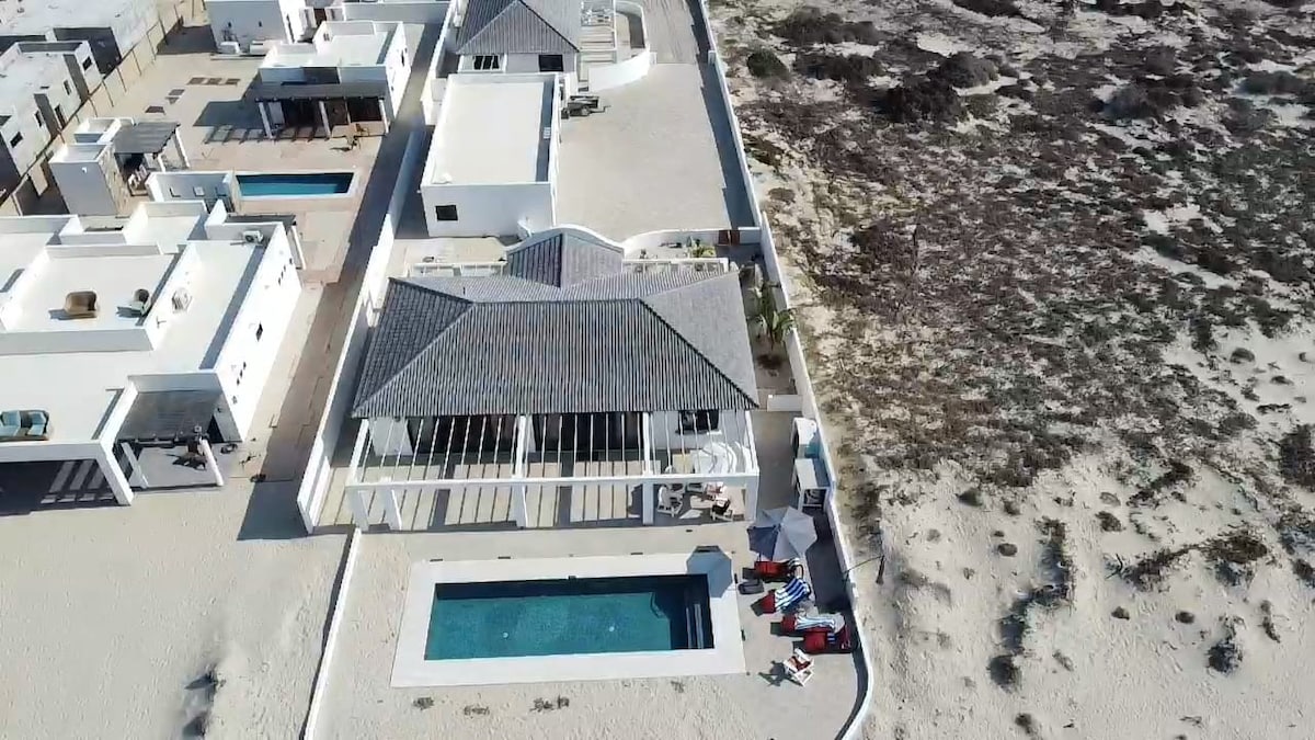 Exquisite luxury casa offering an unrivaled beachfront experience. Pezula Beach is a newly-built 2023, contemporary, private, eco-friendly, secure, oceanfront home on the East Cape Cabo. An air-conditioned dream home with saltwater pool, indoor outdoor kitchen and dining, marble throughout, 3 bedrooms 3.5 baths, sleeps 6 adults 4 children comfortably, fire-pit, ping pong table, paddle boards and on site staff. This enchanting getaway is 30 minutes from downtown San Jose Del Cabo.
