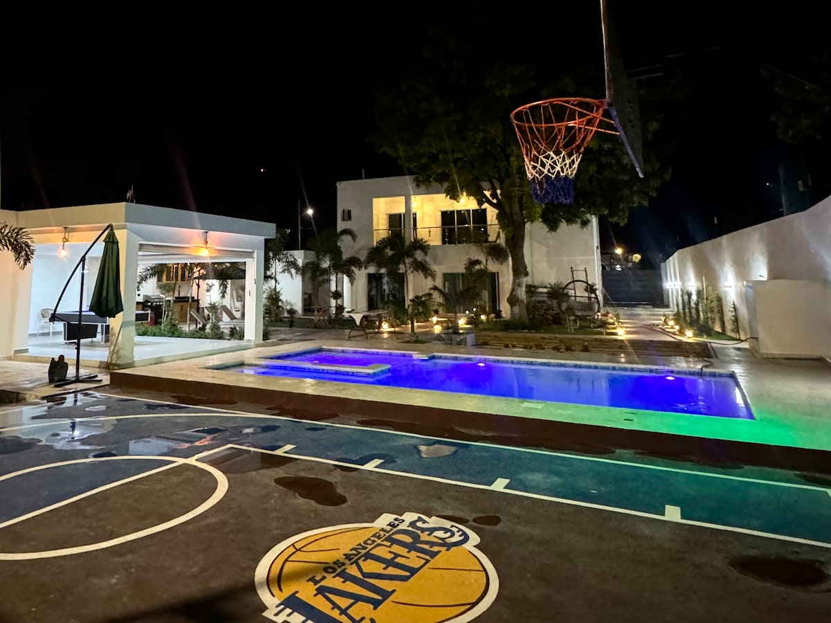 Santa Cruz de Barahona, a solo 3 minutos de La Sirena y 7 minutos del Malecón. Diversión y descanso en un ambiente totalmente, rodeado de naturaleza. Lo que te encantará: • 4 amplias habitaciones, cada una con su baño privado • Cocina completamente equipada • Sala de cine privada •. Cancha de baloncesto • Piscina refrescante con área de hamaca y BBQ • Mesa de billar y zonas sociales • Aire acondicionado en toda el área • Amplio estacionamiento