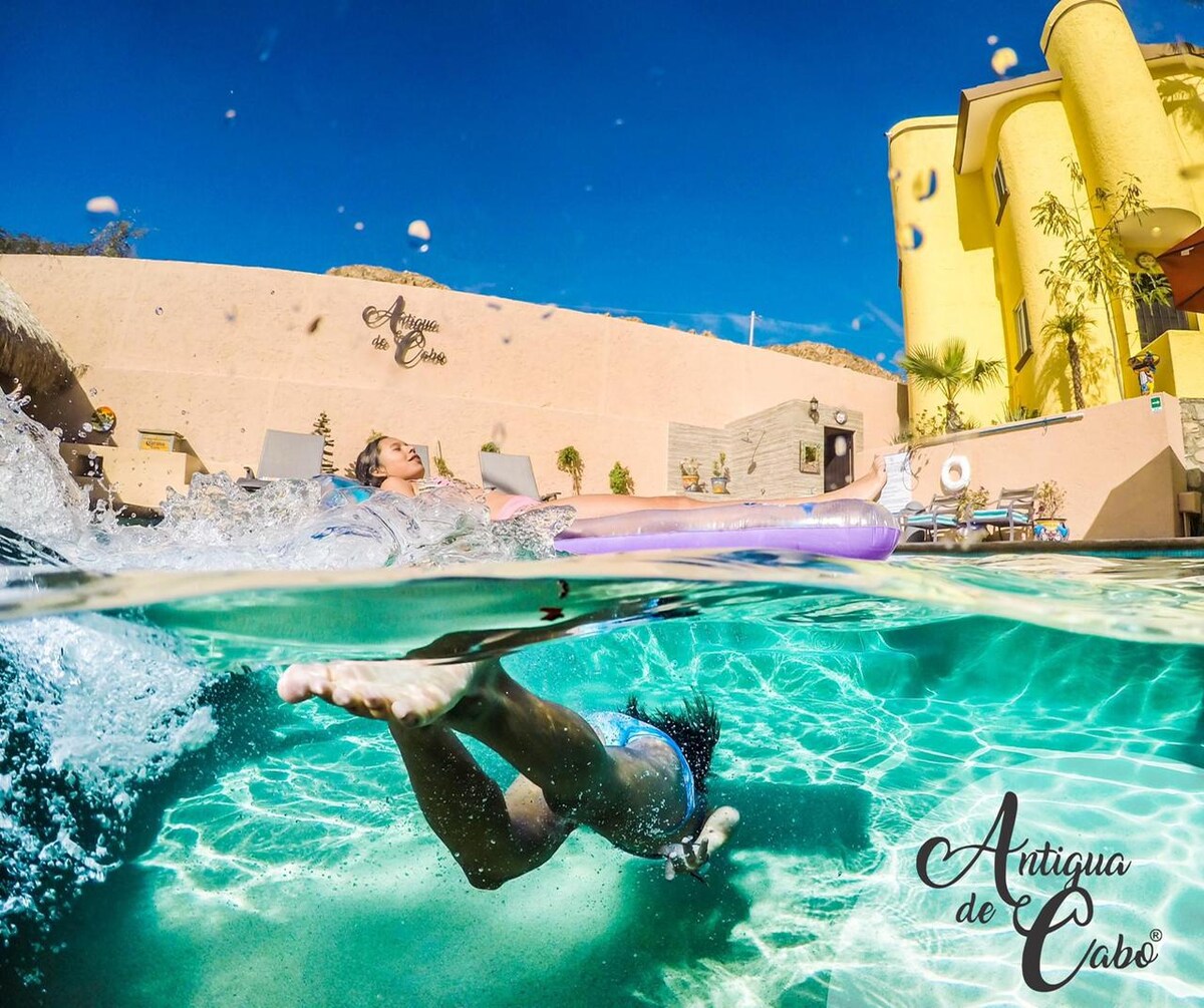 Antigua de Cabo is a unique and magical place that welcomes you into the heart of Mexico but is only a few minute walk to the major tourist area of Cabo san Lucas. Full of color, good energy, and an ambience that makes you feel right at home. Jump in the pool, have a BBQ, enjoy a starry night and tell stories around the fire pit. Antigua de Cabo is truly a special find and will make your stay in our beautiful city even more memorable.