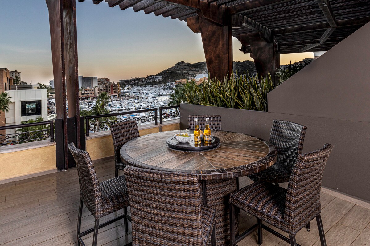 Rooftop fire pit at sunset. Infinity pool in the afternoon. Medano Beach, 5 minutes away. This top-floor penthouse is your base for doing Cabo exactly how you want: lazy mornings with coffee and Pacific views, or full days out with beach gear already packed for you. Sleeps 5 comfortably across 2 bedrooms. Kitchen stocked. 24/7 security. Concierge on call. Your only job? Show up.