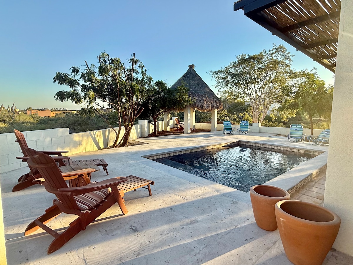 ¡Mi casa es su casa! We are located close to town in one of Cabo's most sought after, safest, gated communities with a private beach that's a 10 minute walk from the house. Enjoy the spacious, recently renovated casita guest house with private entrance & bathroom, perfect for remote working or a quick getaway. Access to the dining room, kitchen & laundry room of the main house included. Enjoy the pool or rooftop terrace with a partial ocean view, perfect for yoga/meditation or a drink at sunset.