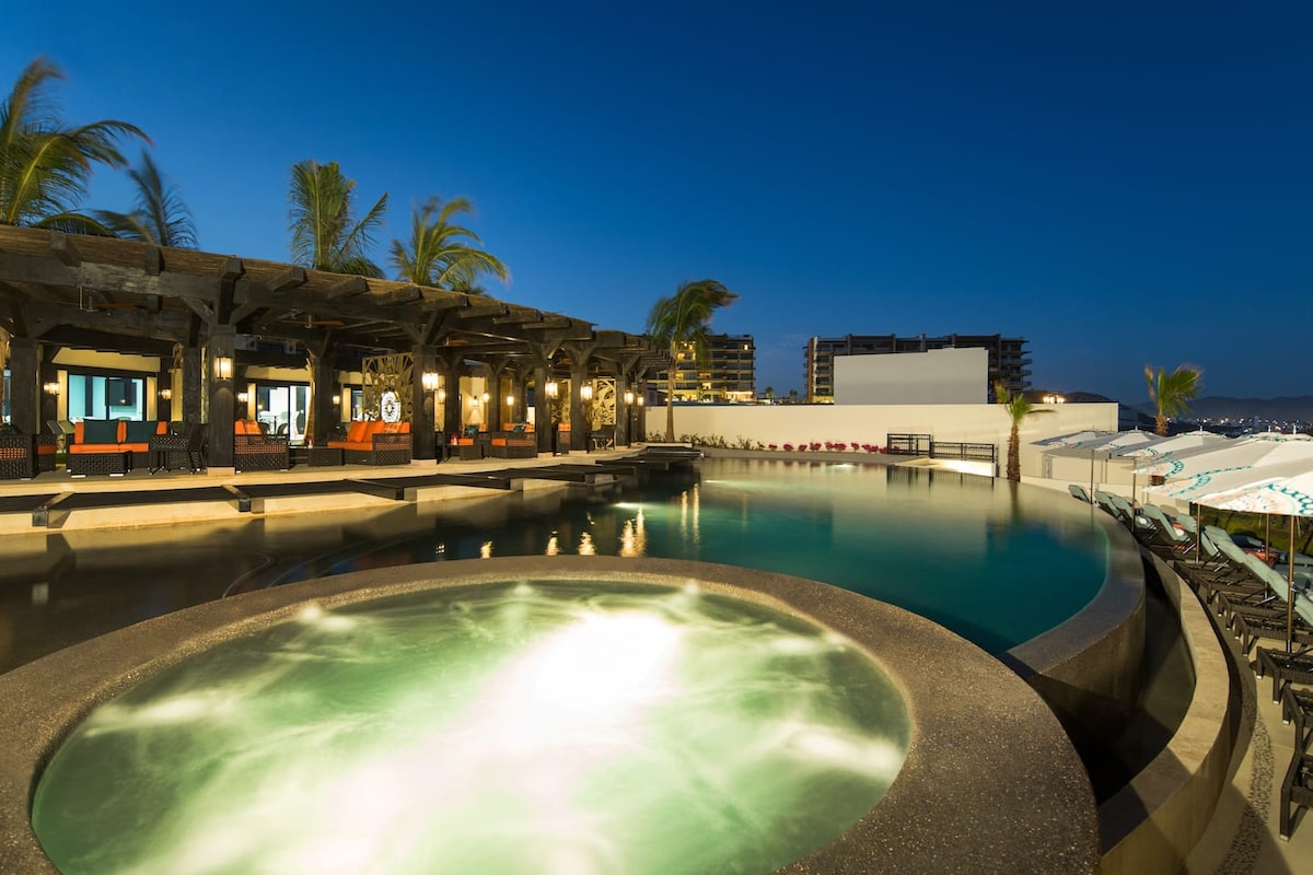 This is a beautiful 1 bedroom casita located on the ground floor. The pool is located directly in front of your room with an ocean view. There is a hot tub located in the main pool. You have access to 25+ pools, restaurants, Quivira golf course, free shuttle rides to 5 resorts. The rooms has a King bed and a private bathroom. This room is locked off and has its's own entrance from the terrace to the pool & parking. This is has it's own 65 inch TV, fridge and microwave. Perfect for 2 people.