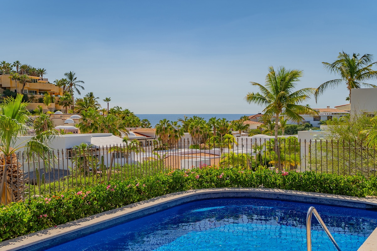Ocean-view villa in Cabo San Lucas with jaw-dropping panoramas. 4 bedrooms, 4.5 baths, sleeps 10. Enjoy a huge terrace with grill, heated pool, outdoor dining, lounge seating, and the best views from every common area. Prime location: 6 minutes to downtown, Medano Beach, and the marina. Resort amenities include a larger pool, gym, and cozy firepit.