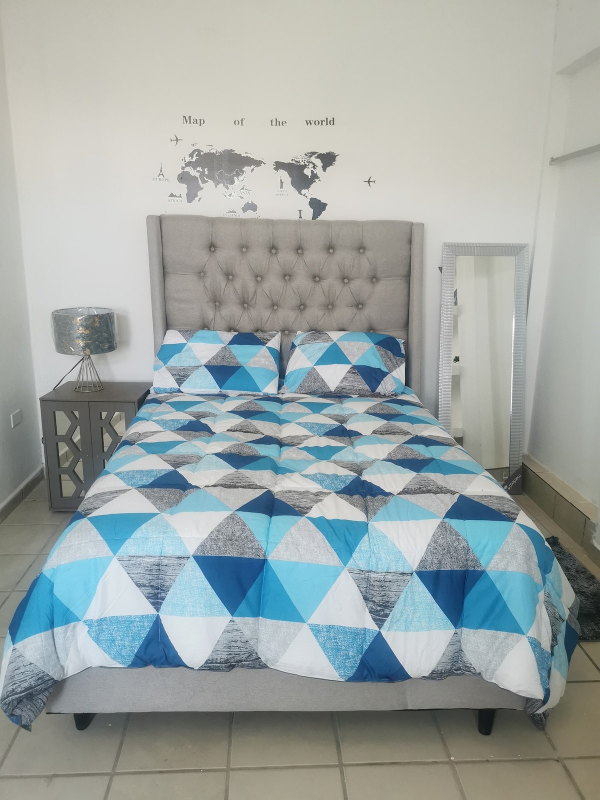 Habitación para 2 personas con un lindo baño. El espacio es muy confortable, las cortinas tapan la mayor cantidad de la luz por si estas cansado y deseas dormir un poco mas. La entrada es independiente y tiene su área de estacionamiento, está equipado con una cama queen, ventilador, en el área de cocina hay frigobar, una parilla y los instrumentos necesarios.